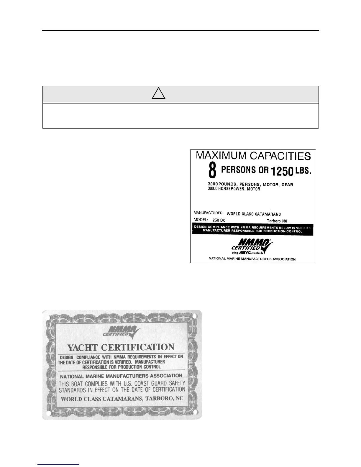 Pursuant to NMMA certification, all World Cats over 26’ in length are “Yacht Certified” and carry the placard