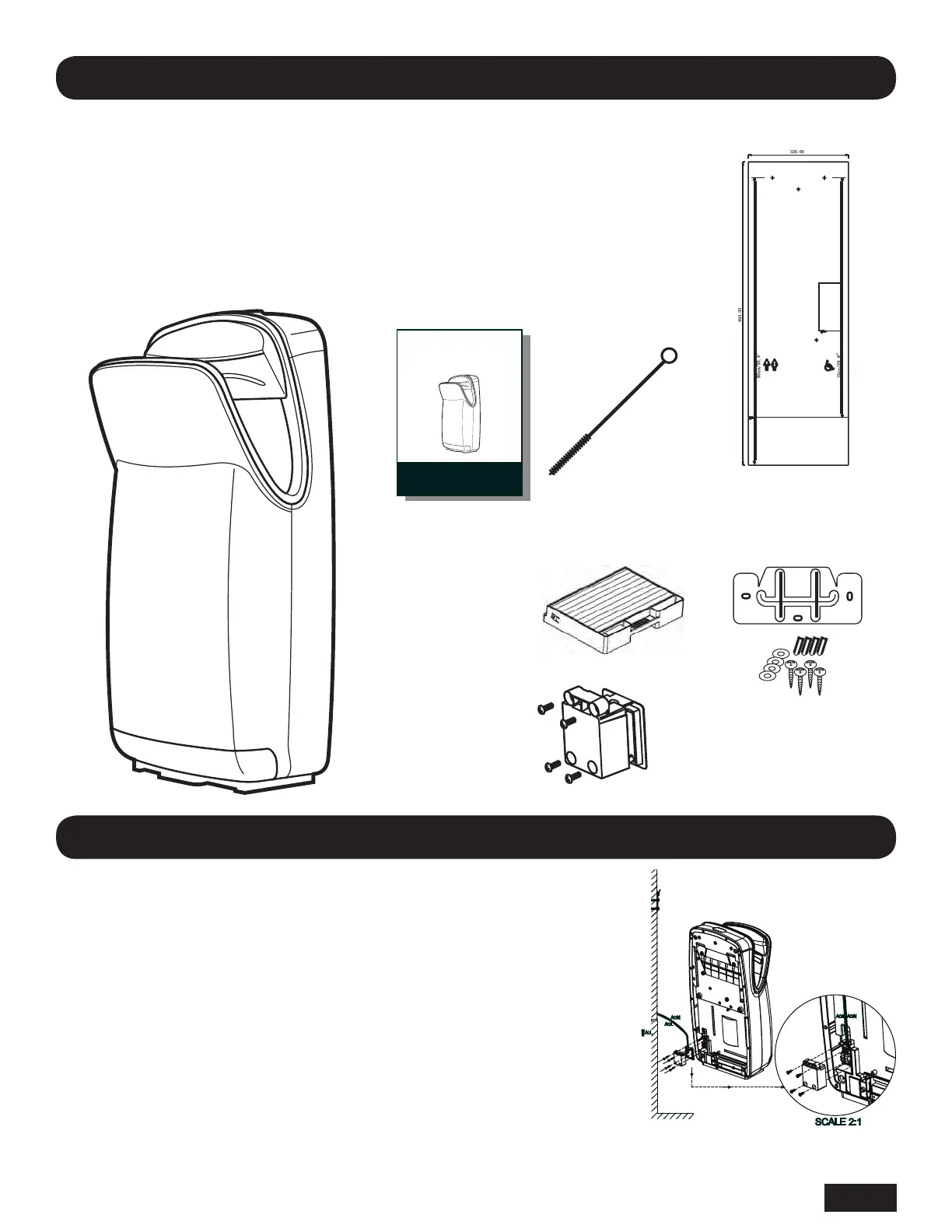 Les accessoires standards qui accompagnent le sèche-mains sont :
