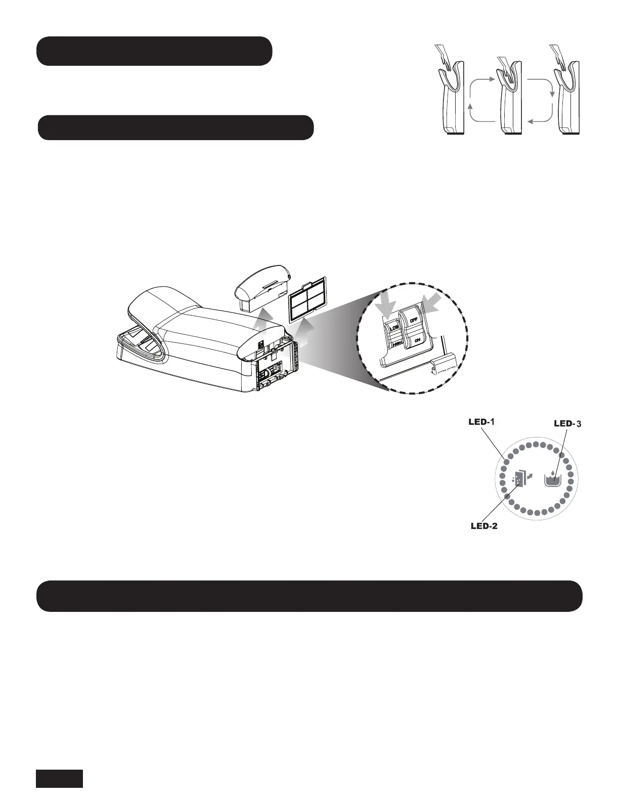 • LED 1: Mise en marche: (Mode 1) LED 1 une icône bleue apparaît 3 fois. Puis, les