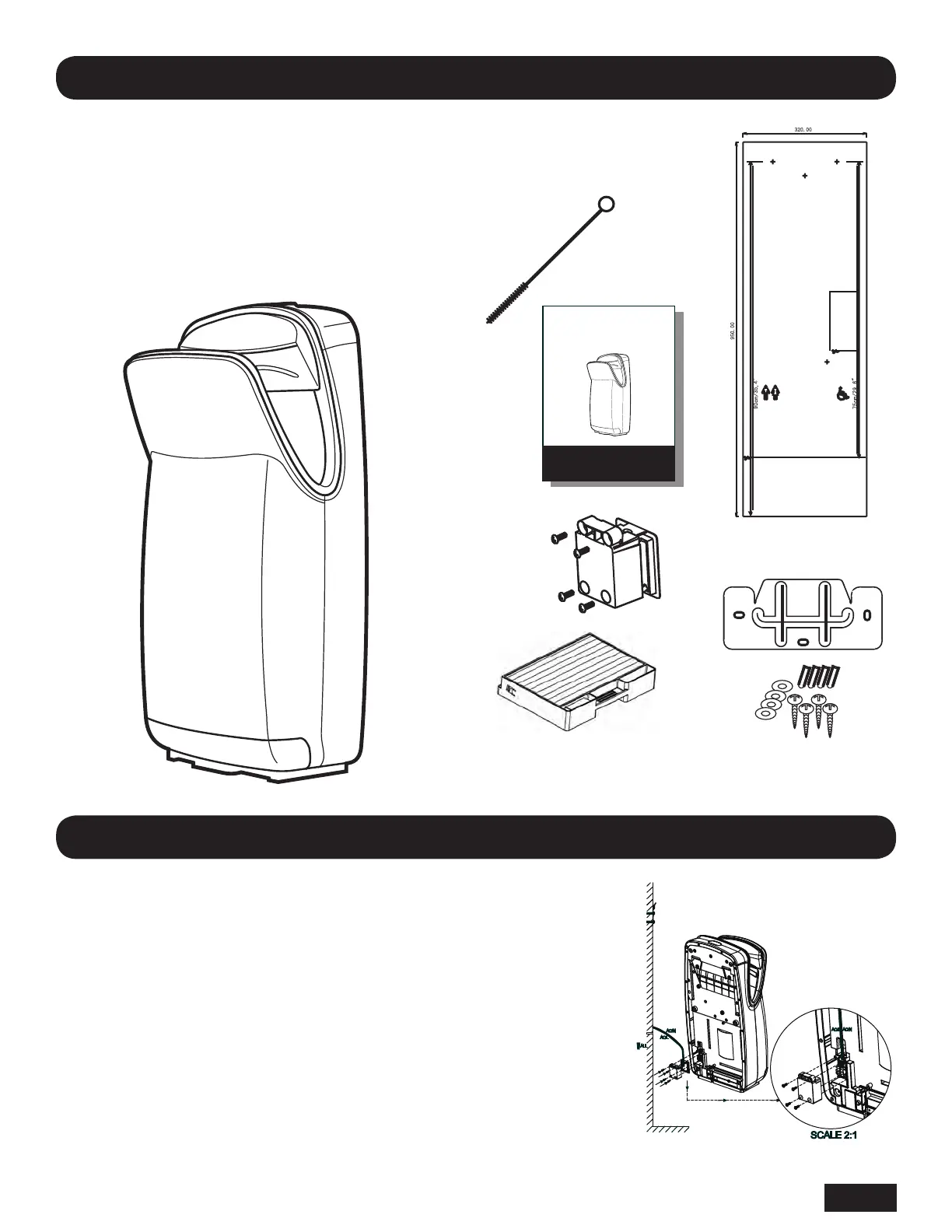 missing or damaged parts. If the hand dryer is damaged or missing parts, promptly inform the