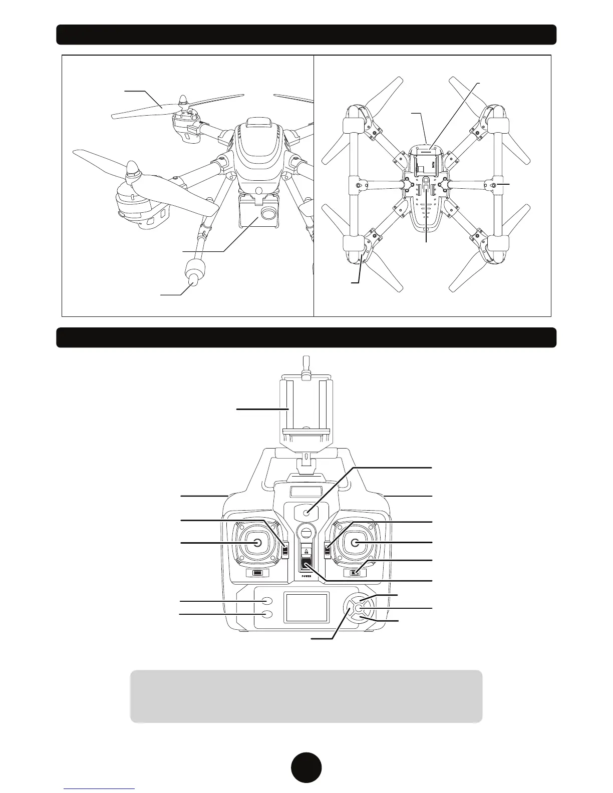 WORLD TECH ELITE 33061 - Drone and Transmitter Diagrams; Drone Component Identification; Transmitter Controls and Interface