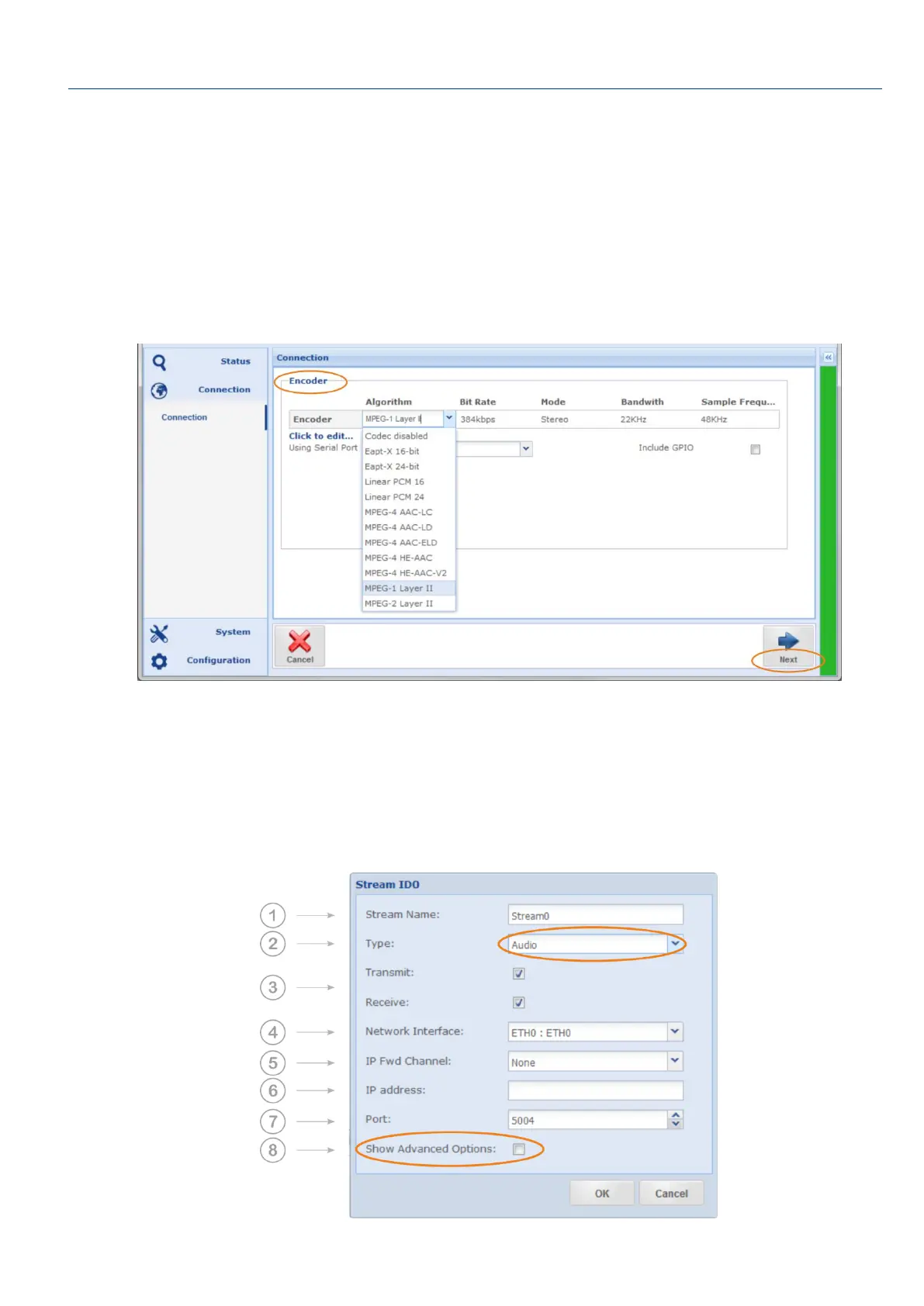 10. A continuación, será necesario configurar el algoritmo del codificador, la velocidad de transmisión