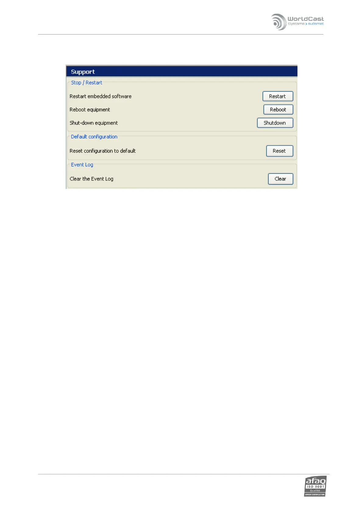 “Reboot equipment”: this function restarts the entire unit.