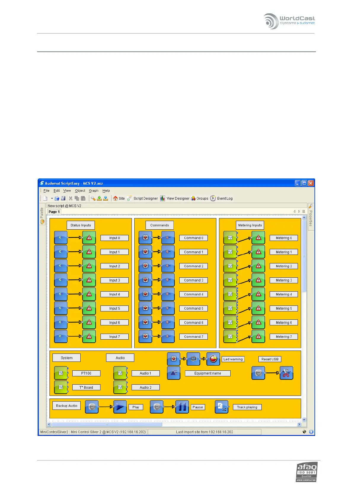 For more information regarding ScriptEasy, please read the ScriptEasy manual that you will find on the Audemat