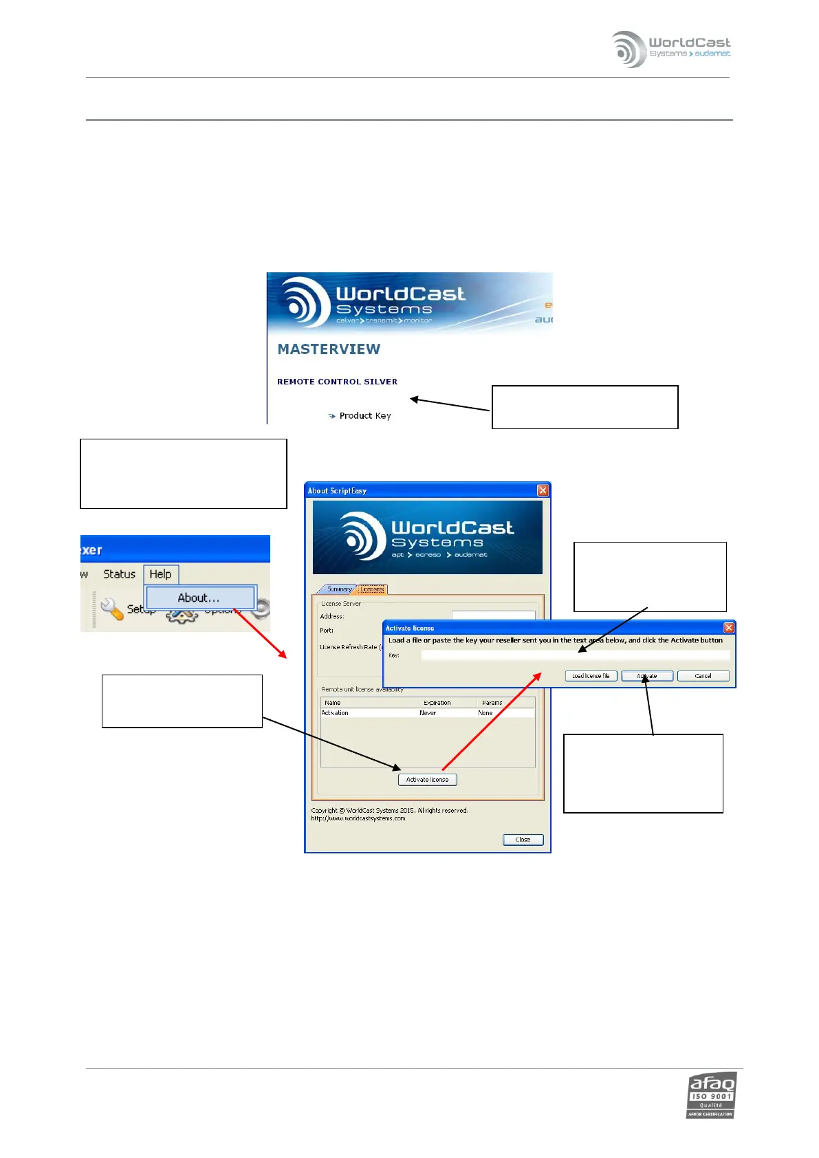 Contact the sales department in order to obtain the software key to activate the “MasterView” option, and then