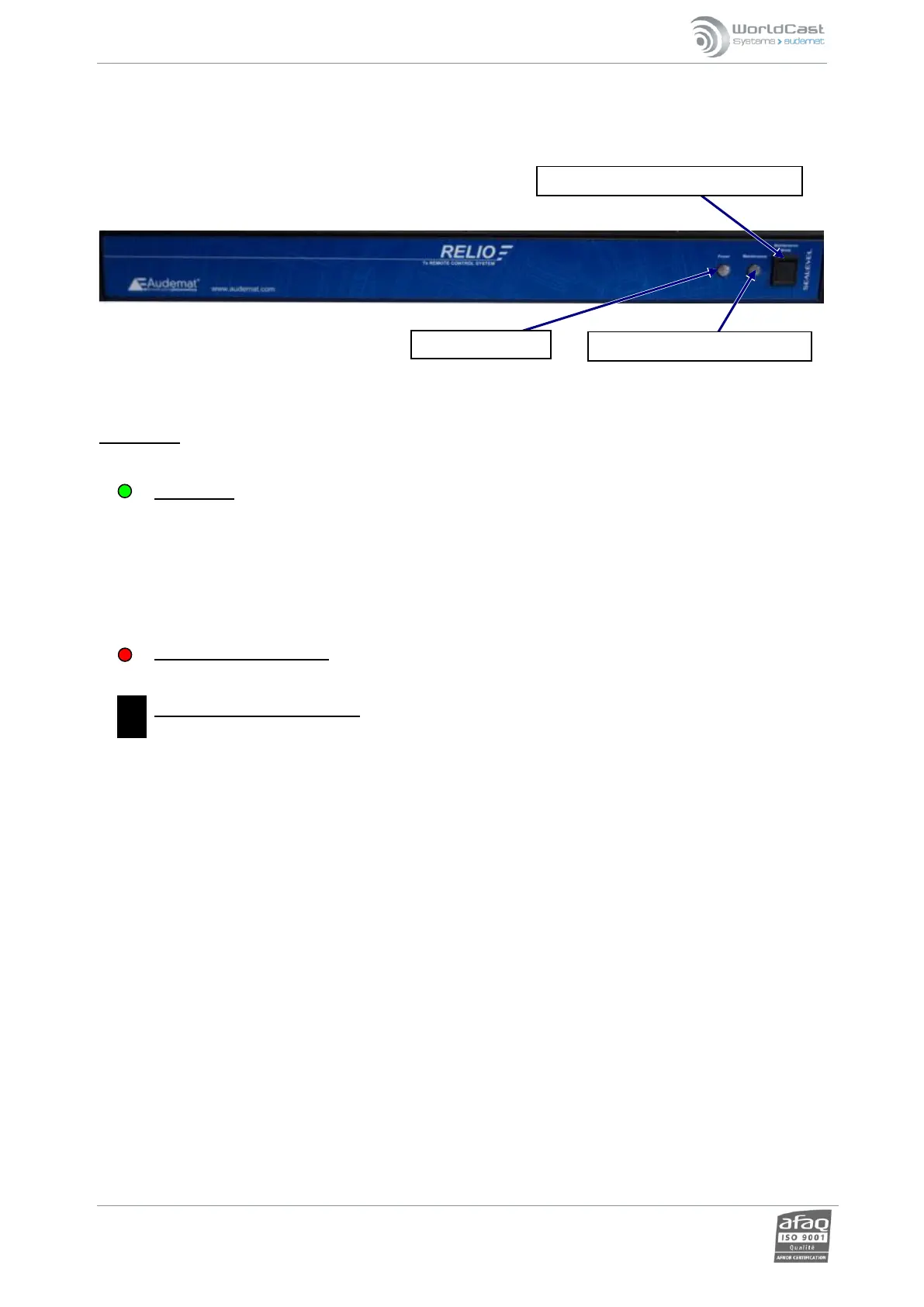 Off : RELIO does not have power. Note: this does not indicate that the Relio itself is running,
