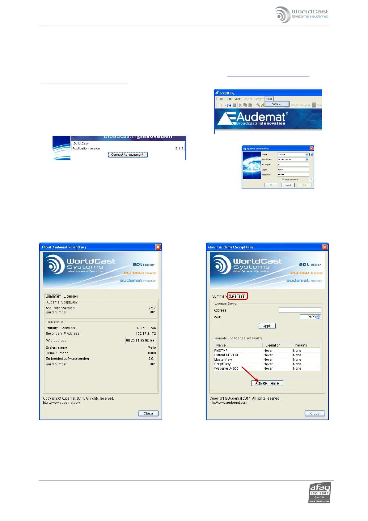 WorldCast Systems Technical support to obtain your license key. You will then return to this page of the software