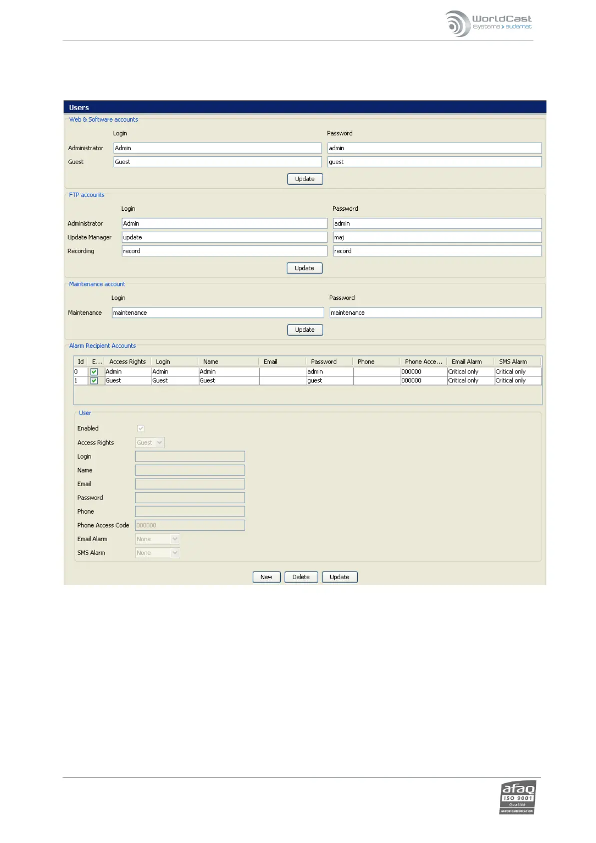 o Guest: when the user is connected as a “Guest”, he/she may view the parameters and