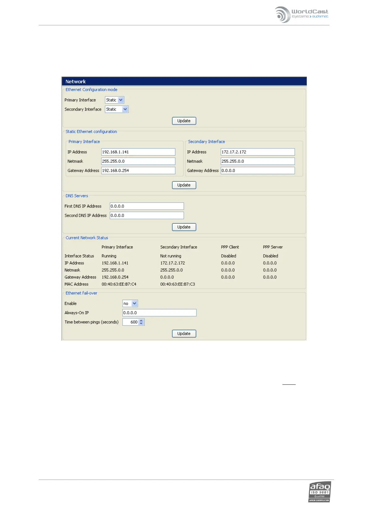o Static Ethernet configuration