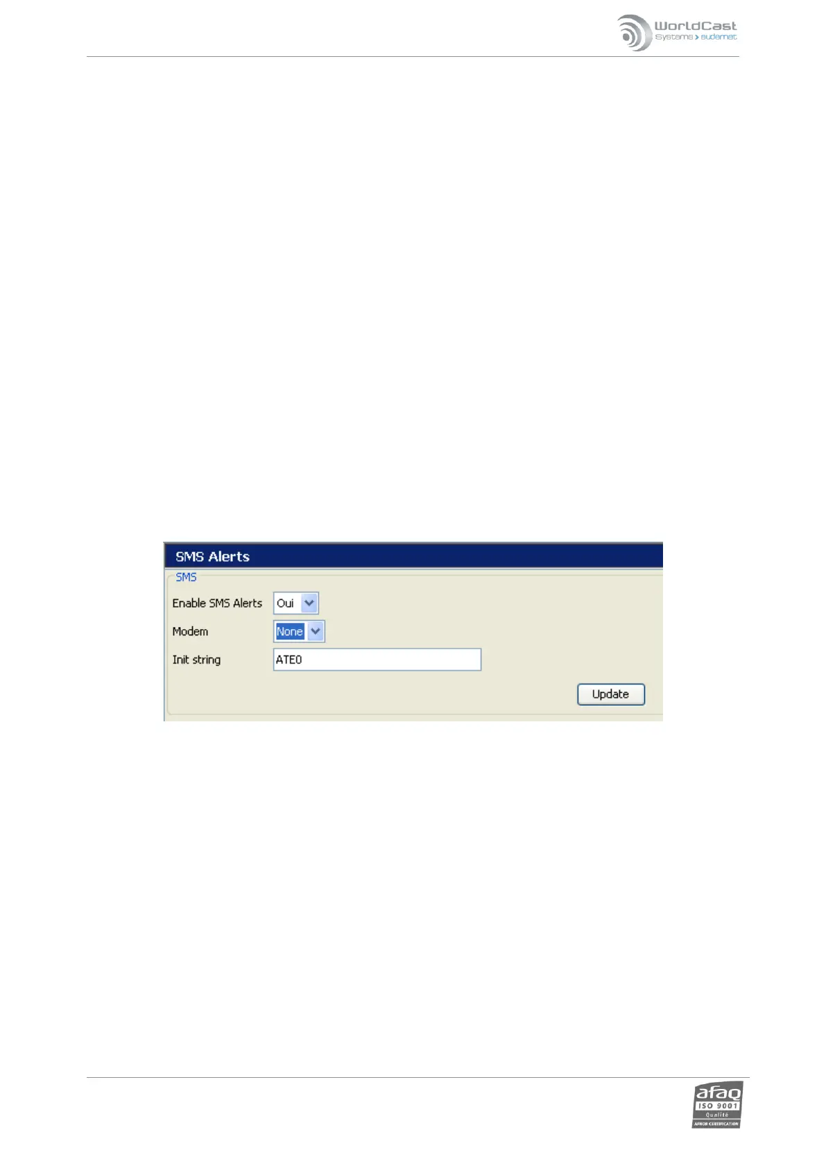All modems are not compatible with the SMS function. Use the DB-9 modem approved by WorldCast Systems (see