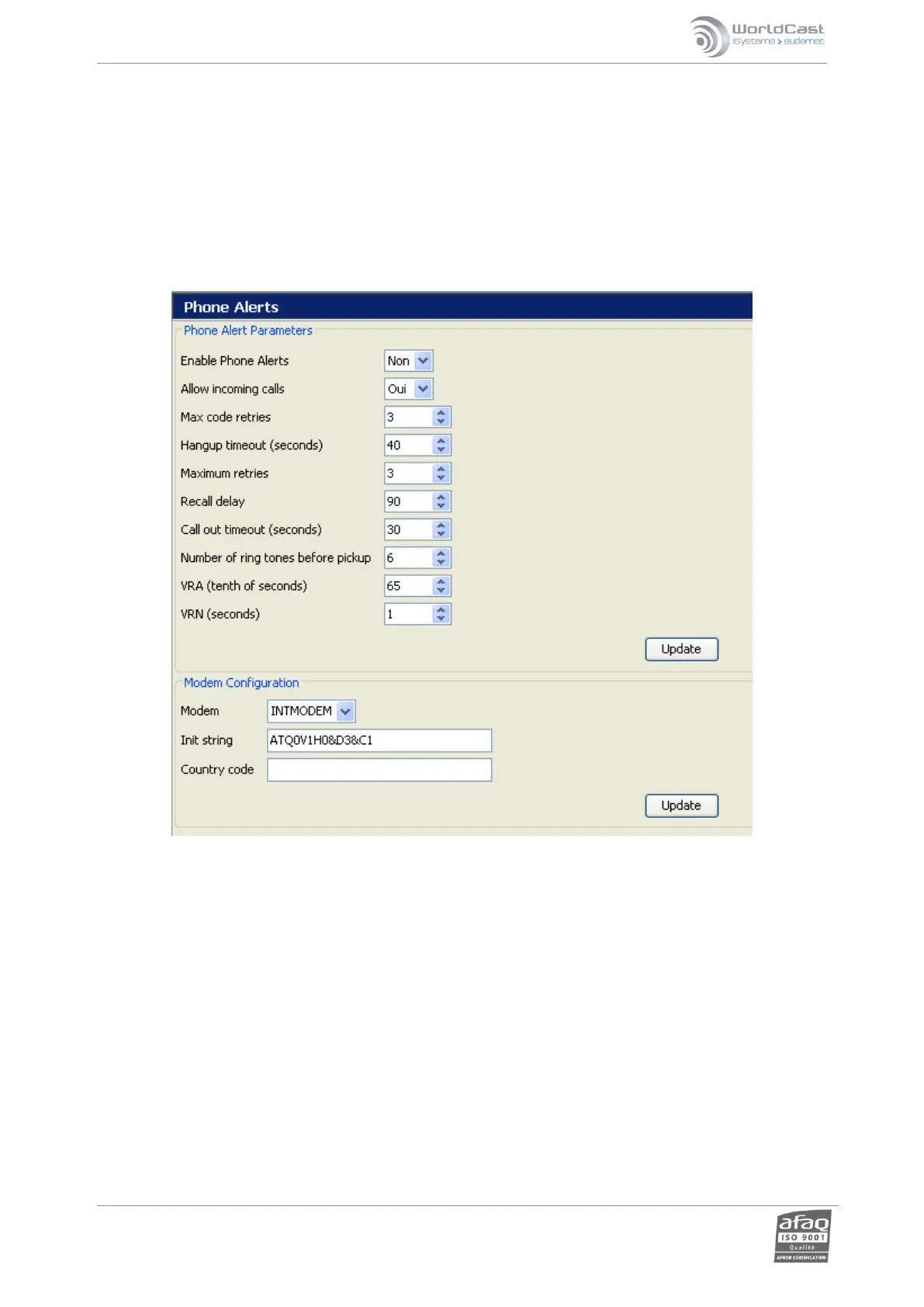 the user can configure the settings for sending the phone alerts. Please see the User page (section 3.13) and the