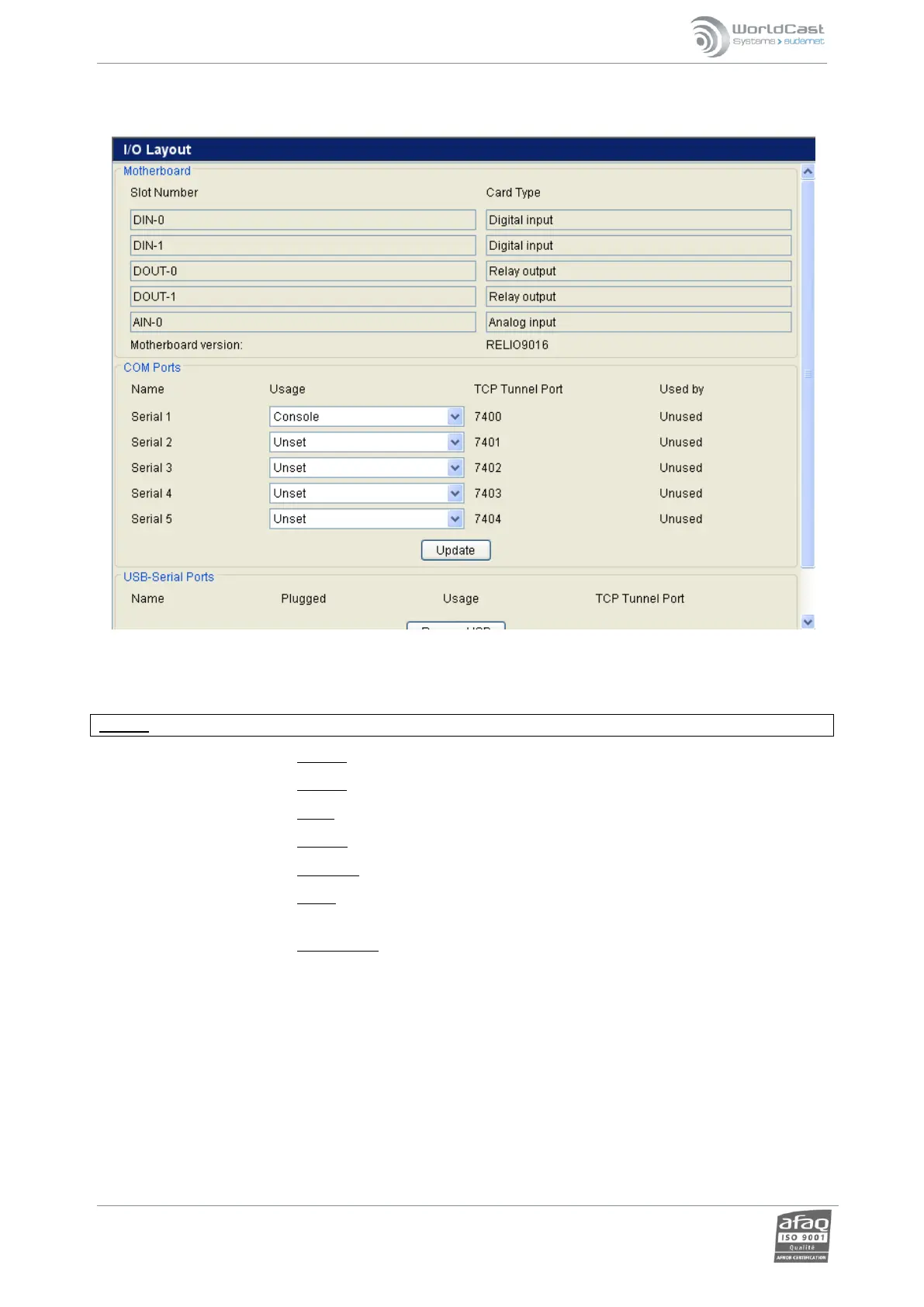 USB-Serial ports: This enables serial ports to be added dynamically. Contact WorldCast Systems to check