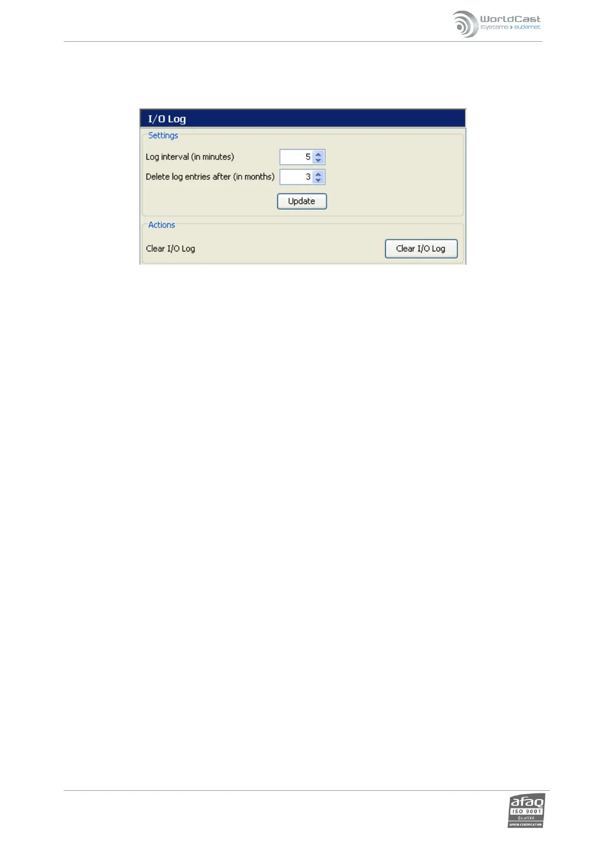 Set parameters for the I/O log that the user can view in MasterView or ScriptEasy (see chapter 6).
