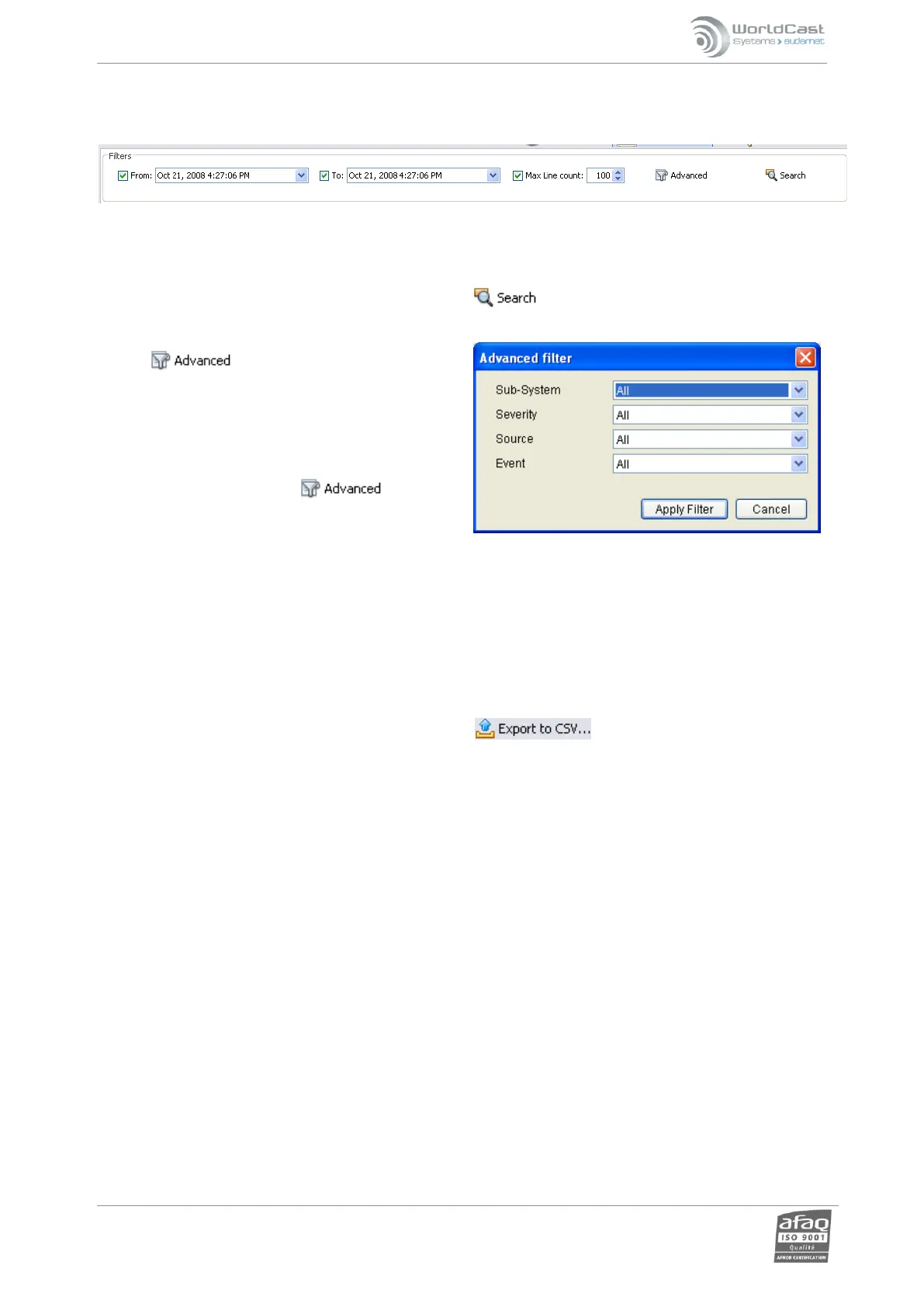 to filter by sub system, severity, source AND event type.