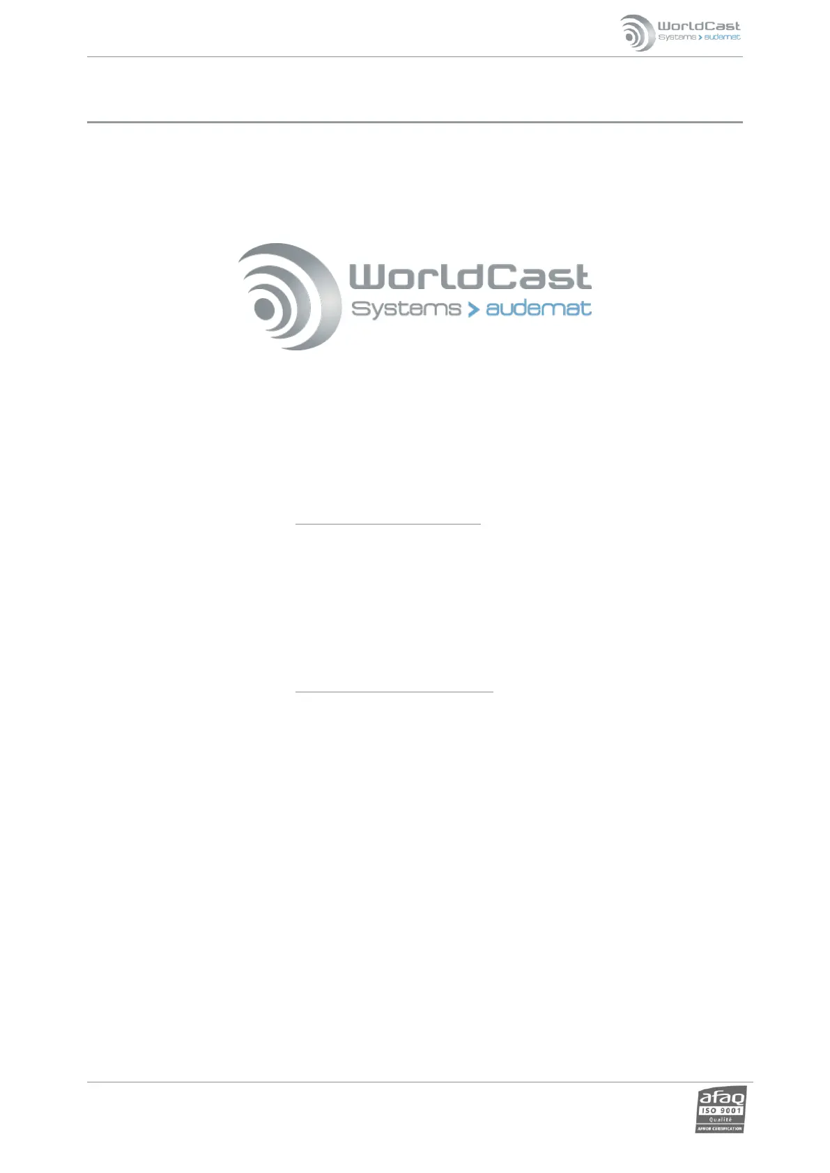 Tel +33 (0)5 57 928 928 – Fax +33 (0)5 57 928 929 – contact@worldcastsystems.com – www.worldcastsystems.com