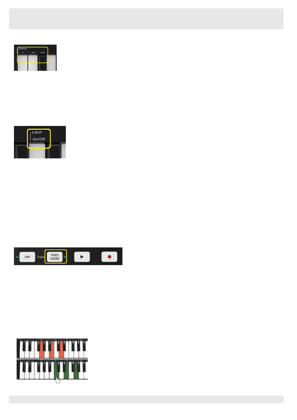 Ab to hear an Ab Major chord, etc. Whenever you enter the Fixed Chord settings, the stored chord is erased and a new chord must be