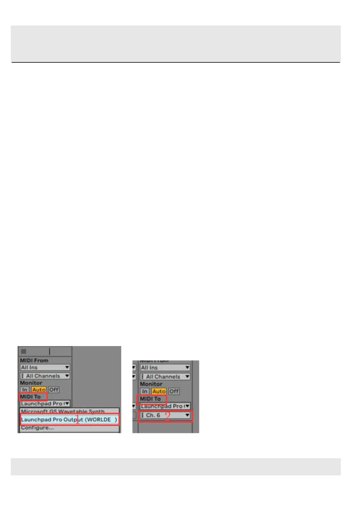 “WORLDE” for “MIDI TO”, 2)select CH.6 for Channels.