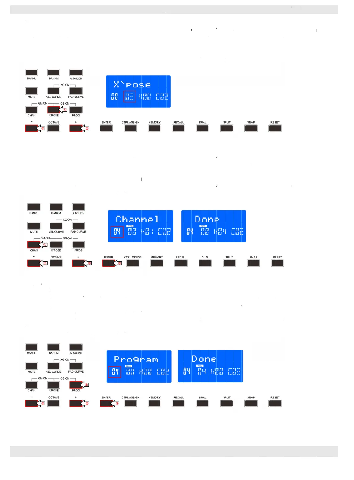 ” button to adjust the keyboard channel, the LCD will display the current keyboard channel on the bottom