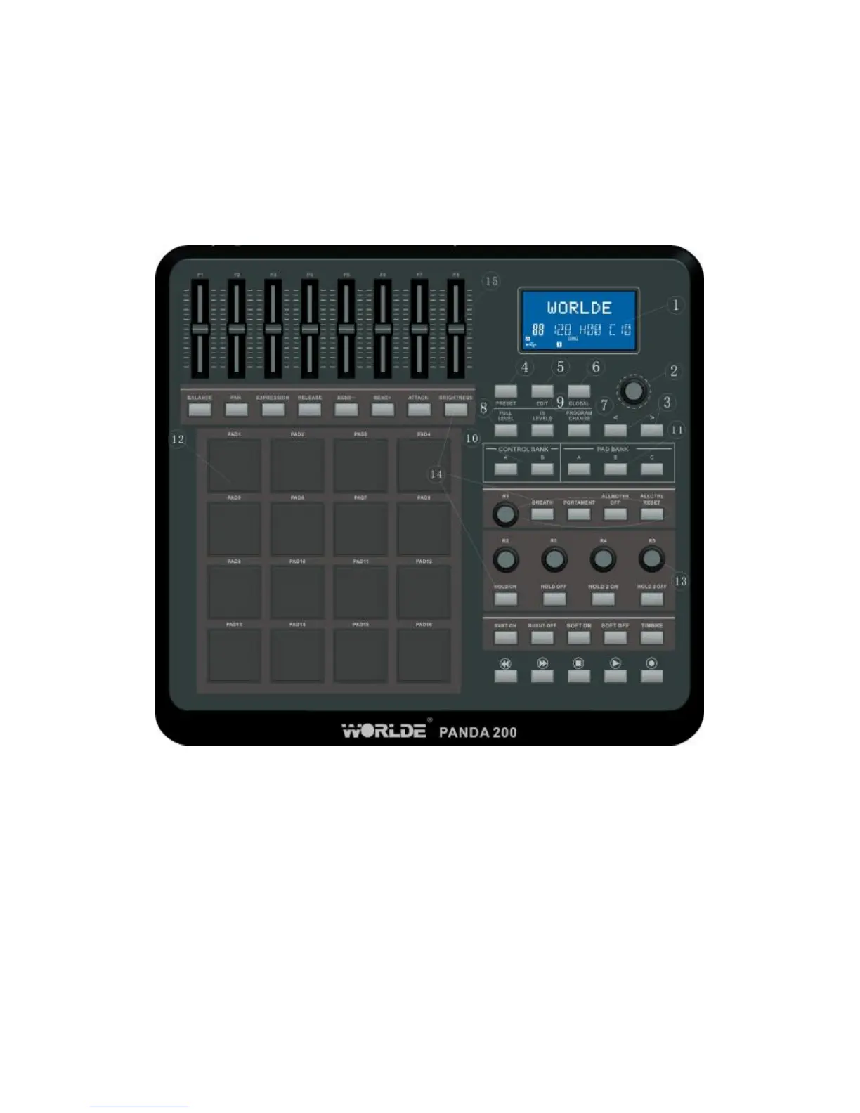 7. [PROGRAM CHANGE] – Pressing this button will enter Program Change mode. In