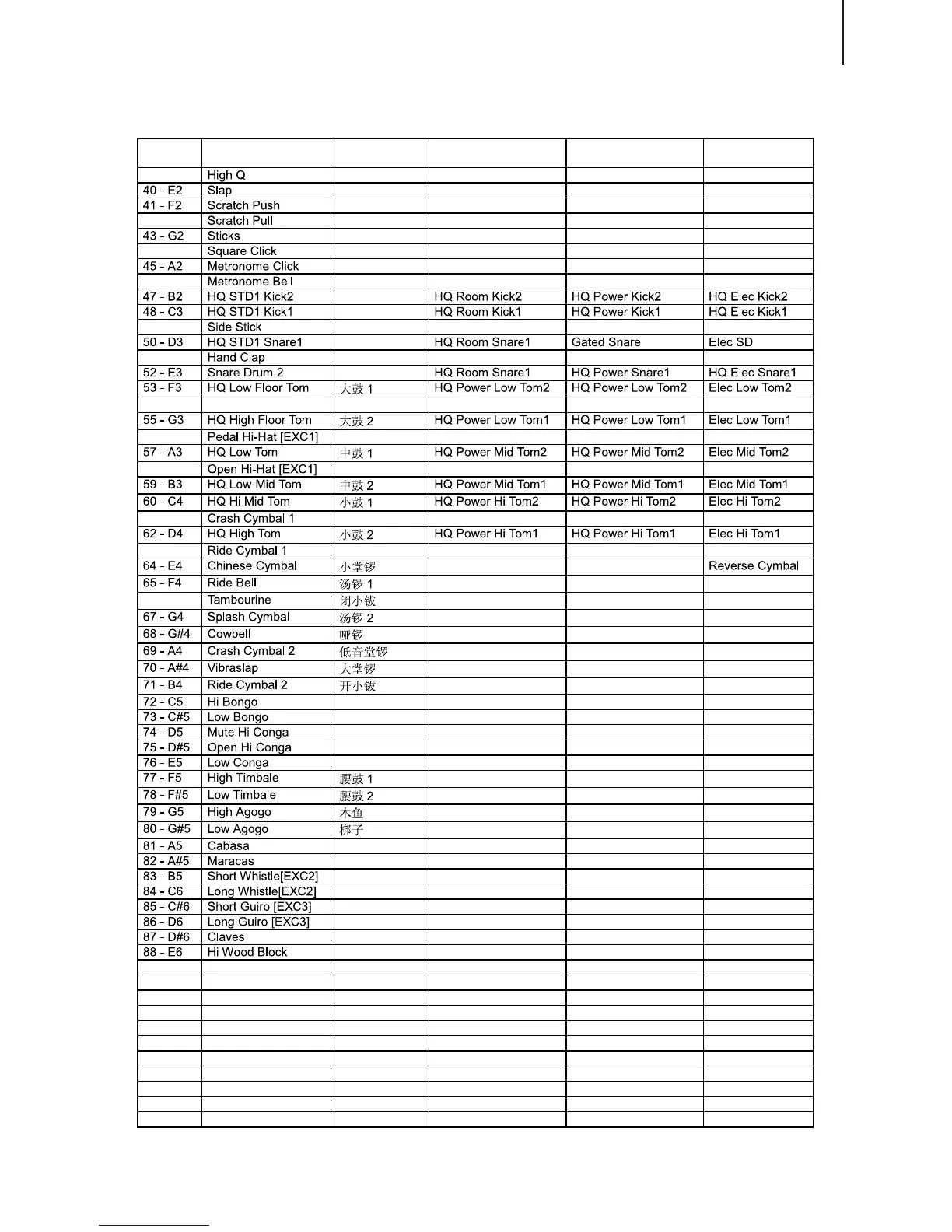 DRUM SET TABLE (MIDI CHANNEL 10)
