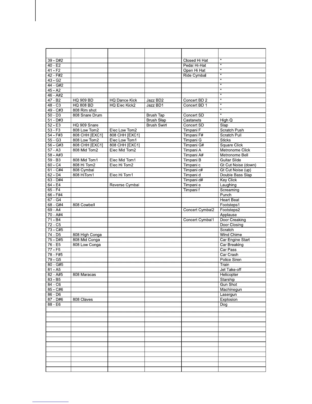 DRUM SET TABLE (MIDI CHANNEL 10)