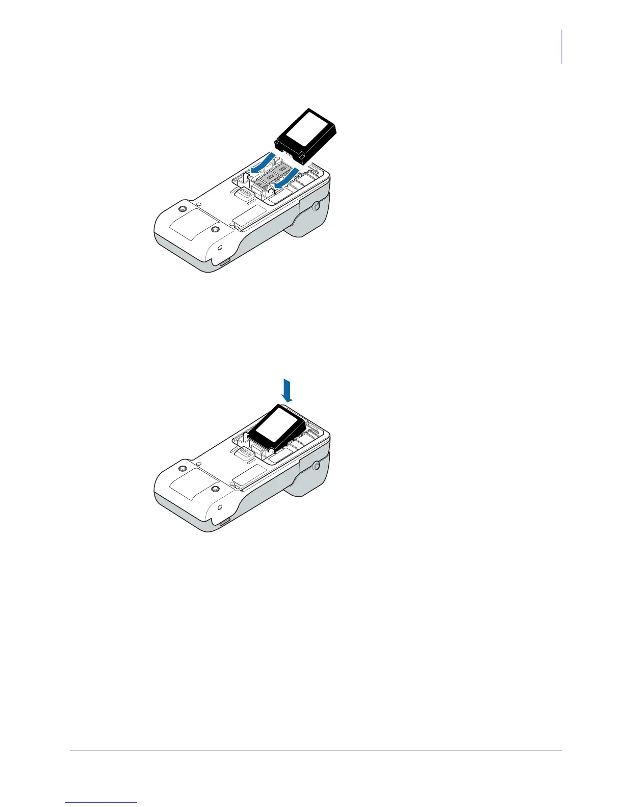 4. Make sure that the battery contacts touch the ones in the terminal, then press the battery