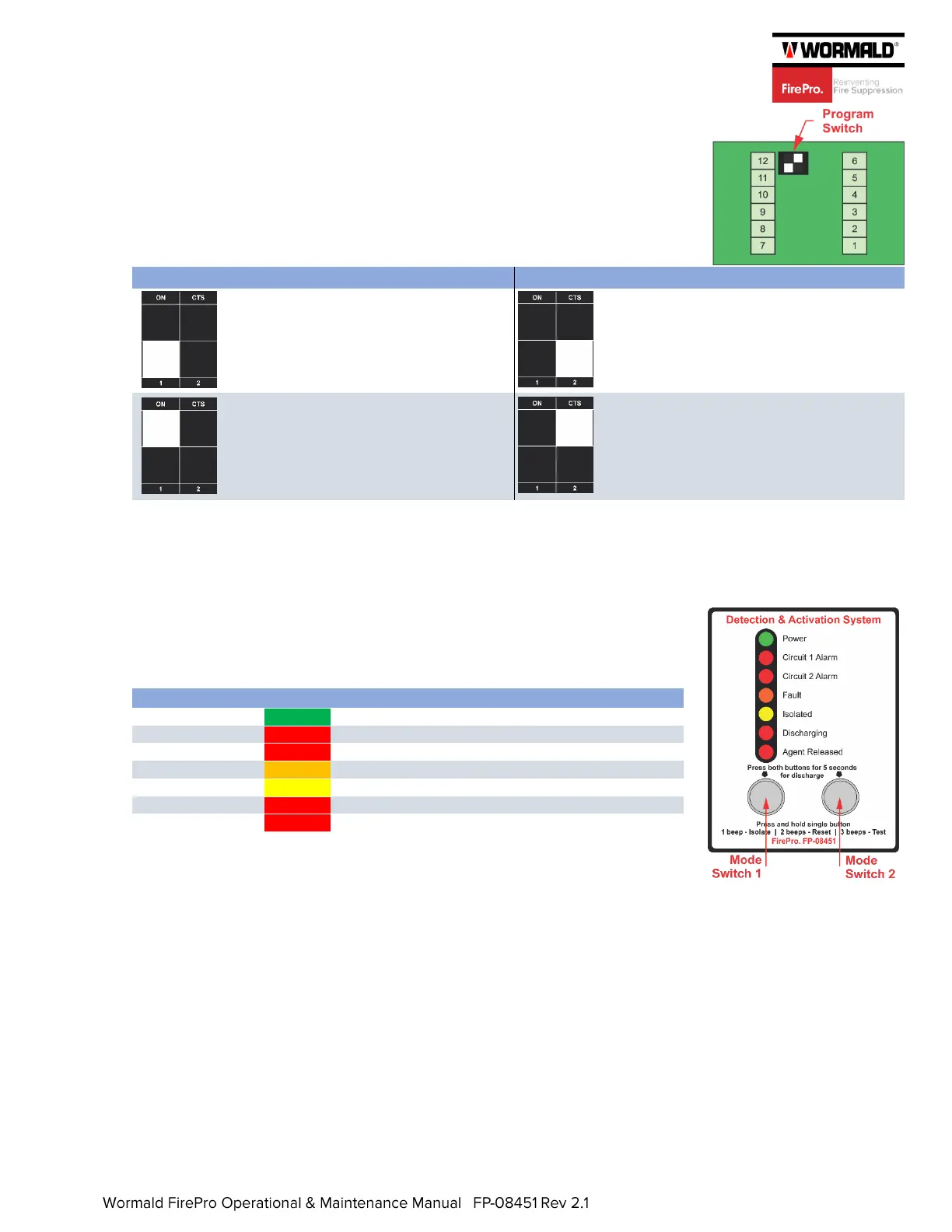 To restore the control panel to normal operation, press Mode Switch 1 and ensure the