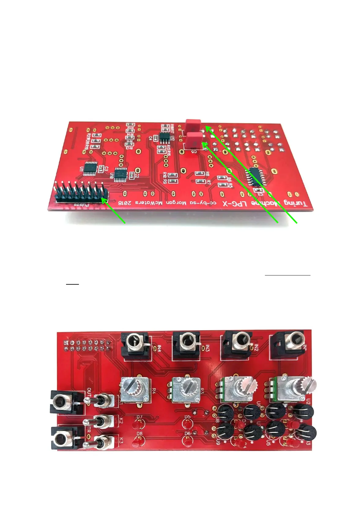 YET all the front side components onto the PCB (Pots, switches, jacks, LEDs). NOTE: