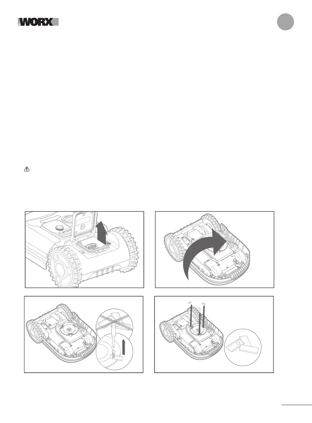 UPOZORENJE! Prije čišćenja, podešavanja ili zamjene oštrica isključite Landroid i izvadite bateriju.