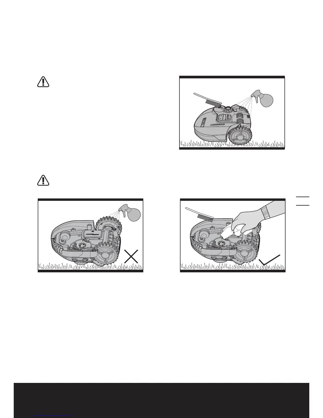 cloth. Remove any build up of grass clippings and debris around the Contact Pins and charge strips periodically to ensure