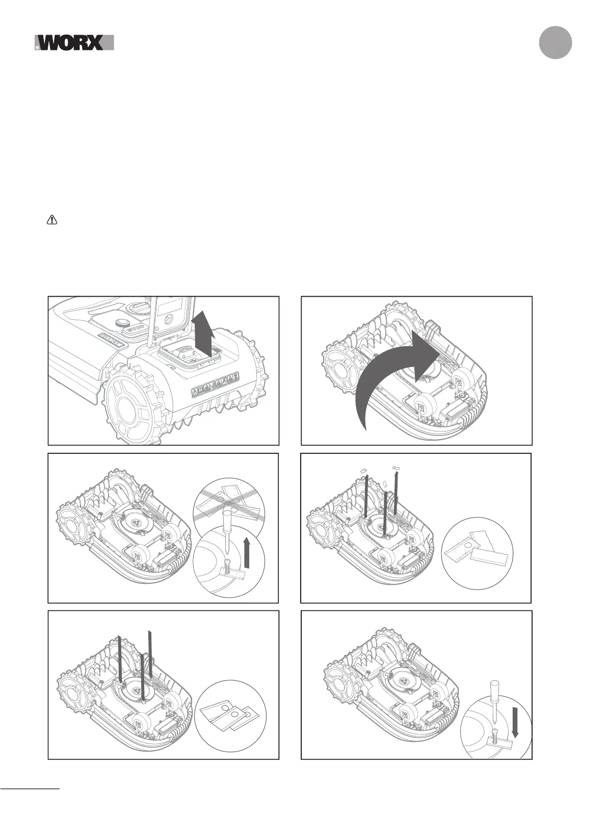 WARNING! Before cleaning, adjusting, or replacing the blades, turn your Landroid OFF and remove the