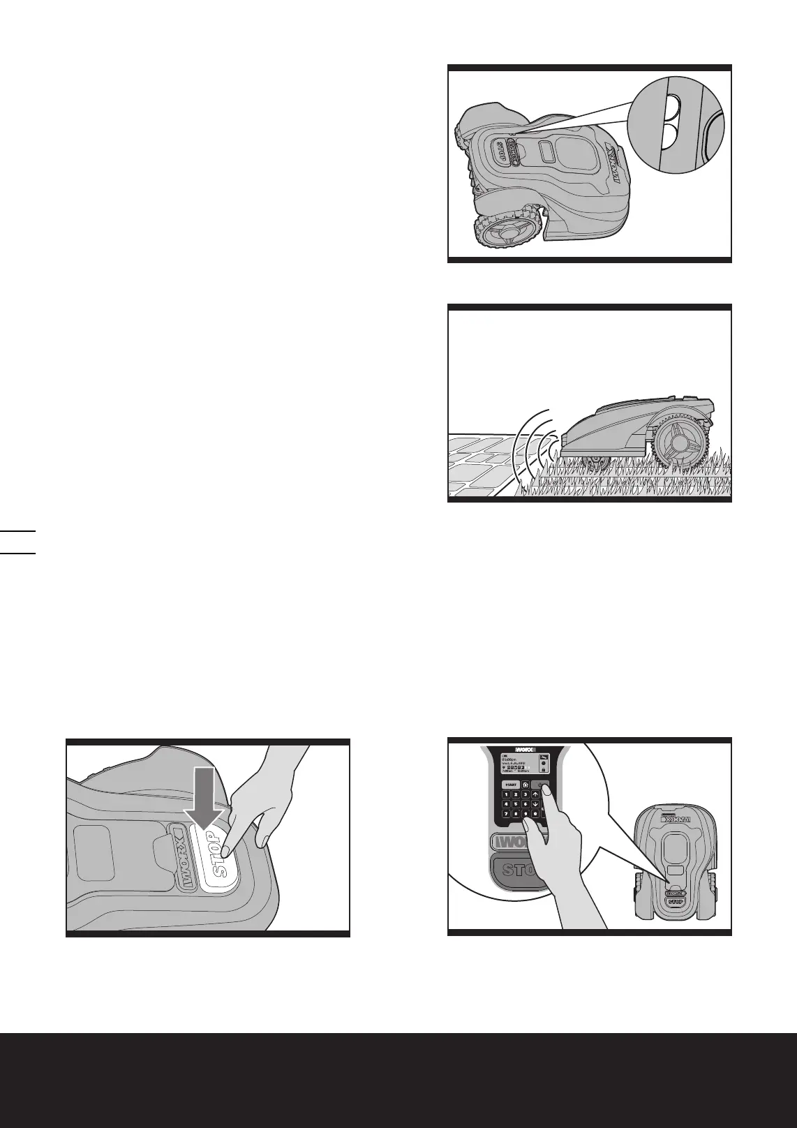 M til å avslutte plenklippingen, er det bare å trykke på STOPP-tasten (8) på toppen av
