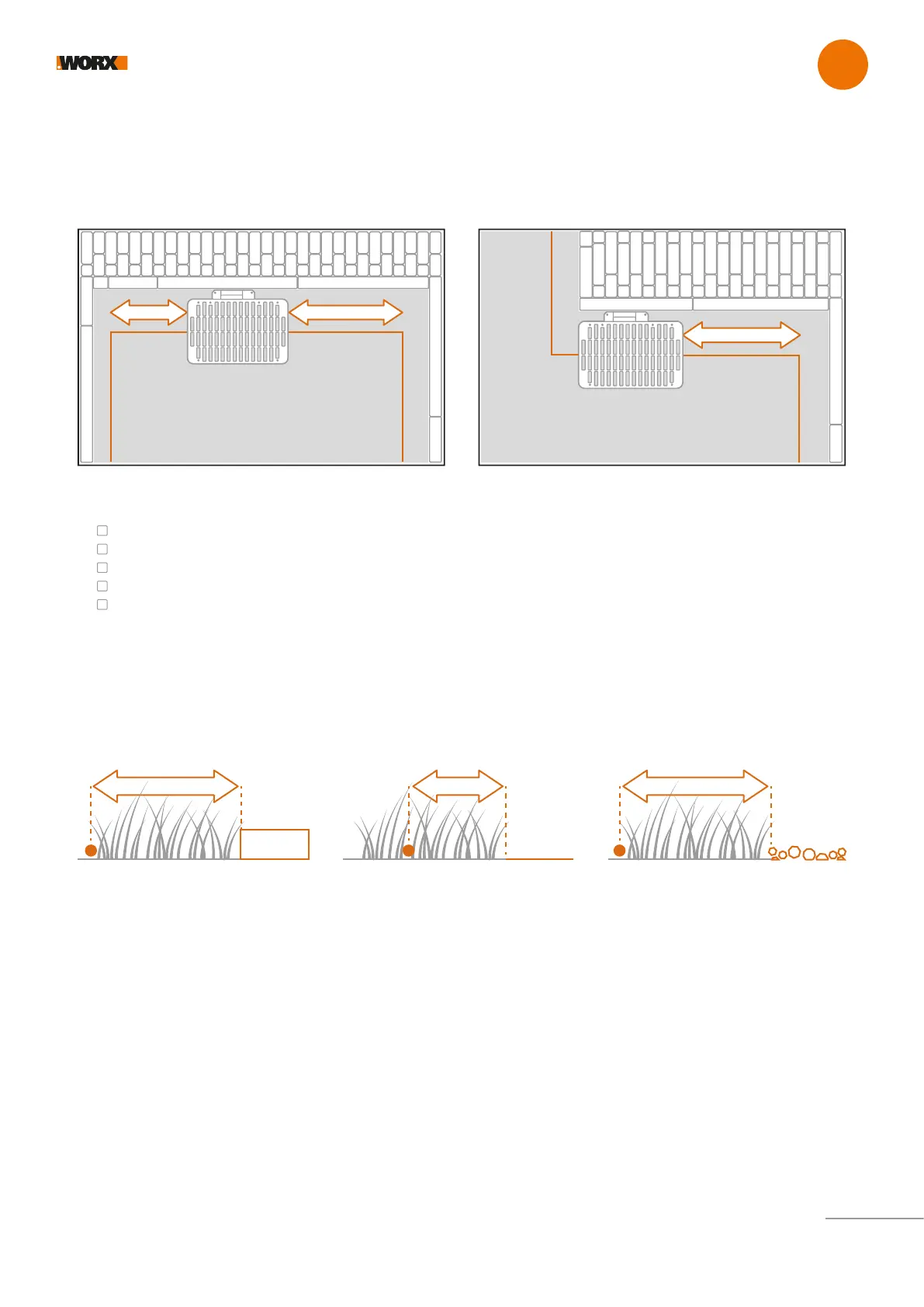 To enter the station, Landroid needs at least 80cm straight path in front. On the exit side, it needs at least 30cm straight path before a left