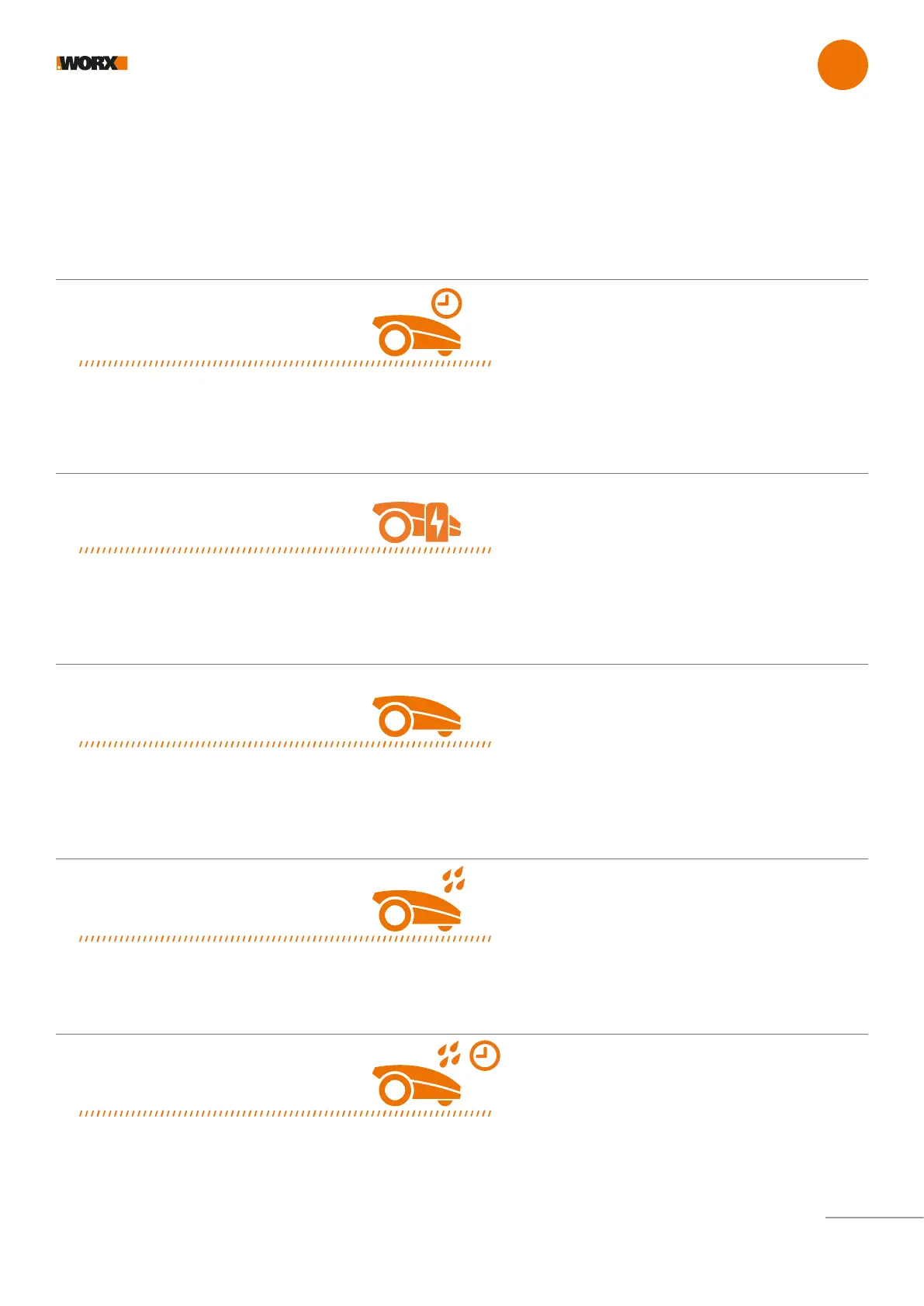 charging base. Once charging is complete, Landroid will automatically resume mowing or stay in the charging base according to its