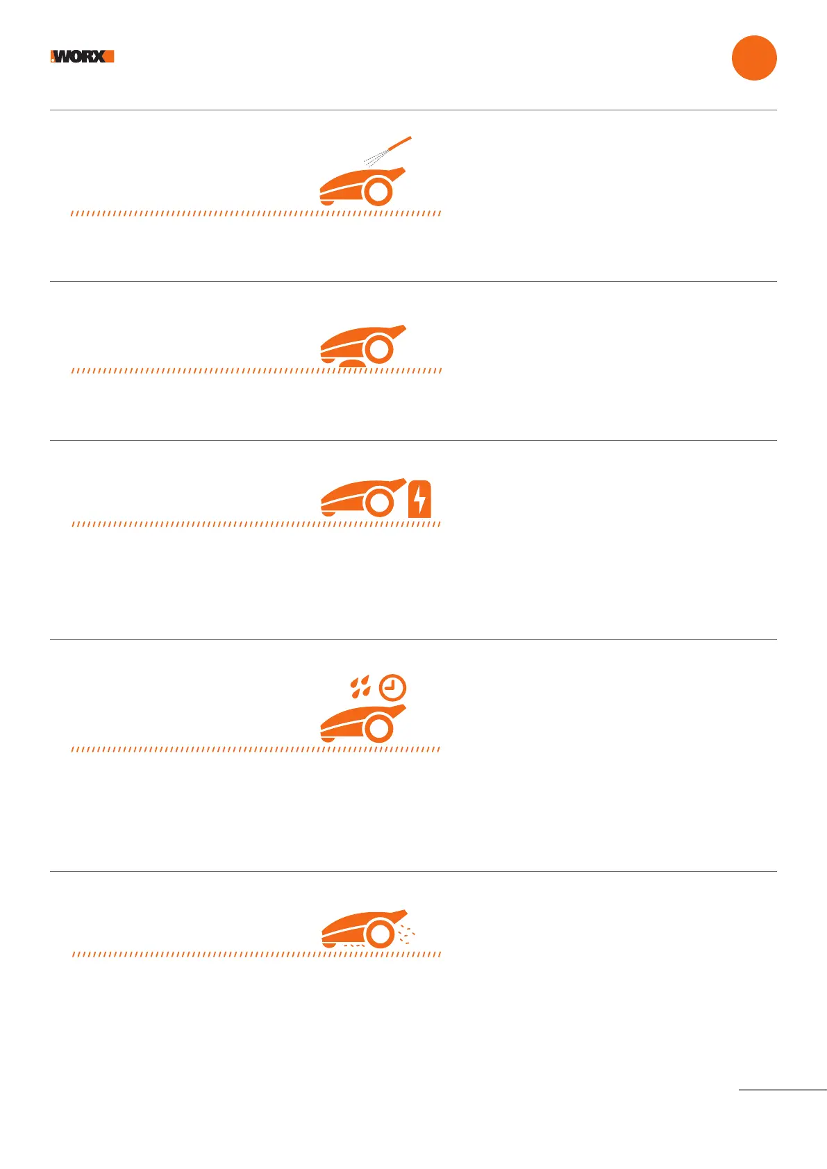 back to its charging base. Once charging is completed, Landroid Vision will automatically resume mowing or stay in the