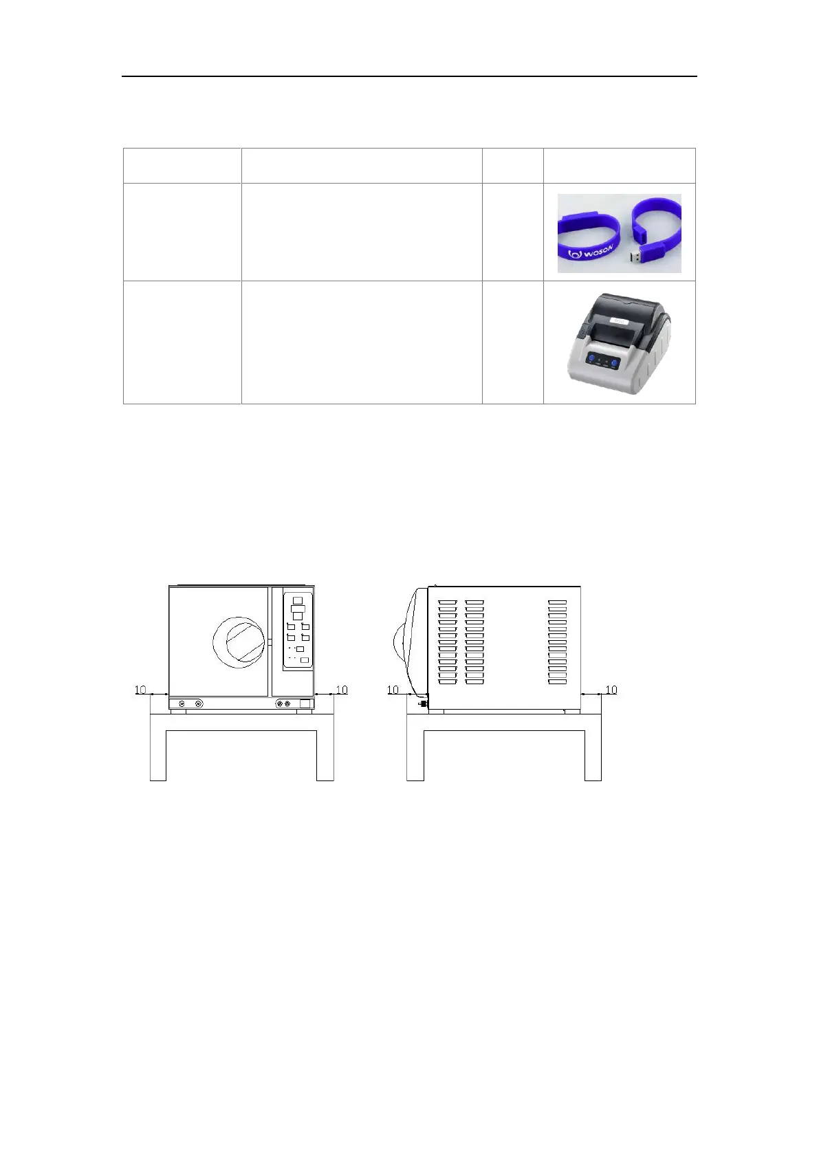 The sterilizer should be set in a place which at least has 10cm distance against each side