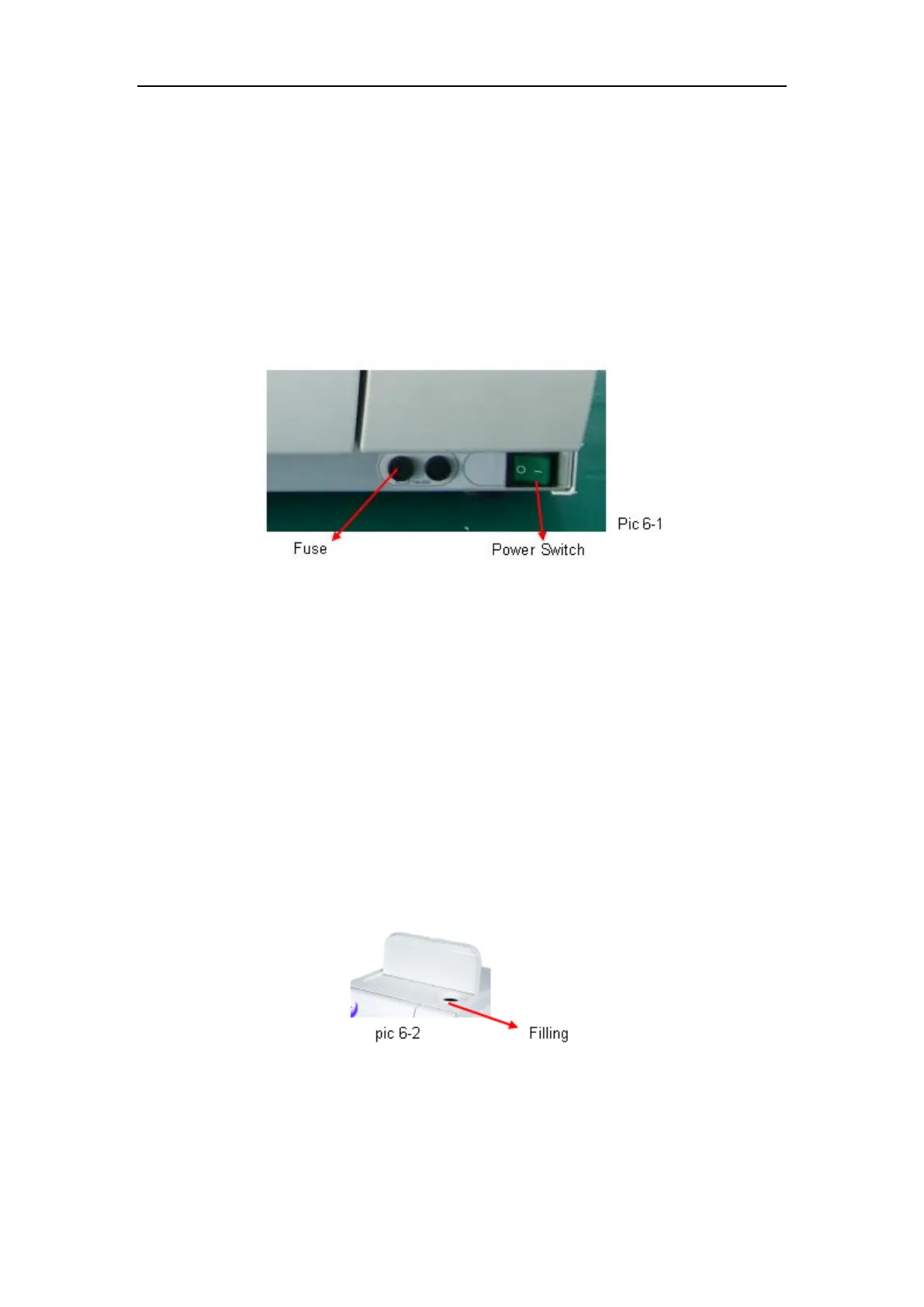 Fill in distilled water from the top of sterilizer. ( pic 6-2)