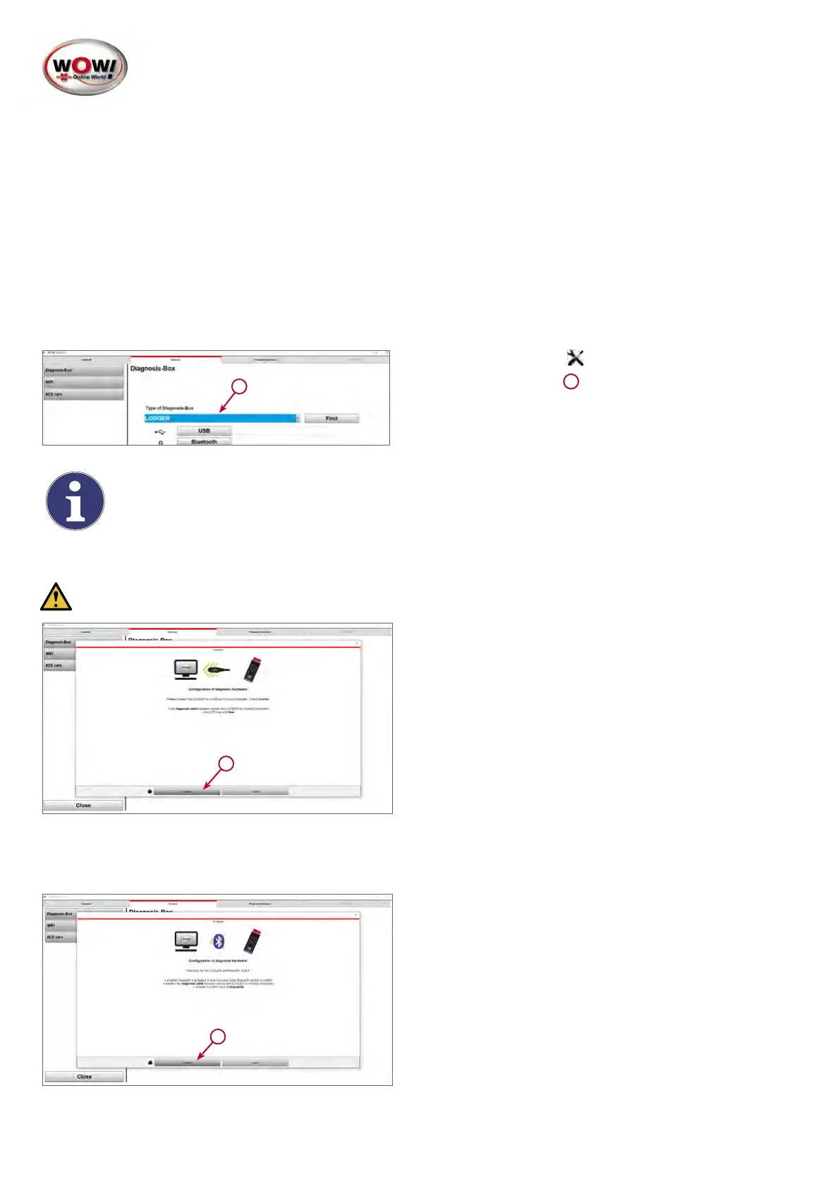 1. Åbn Indstillingerne / Apparater / Diagnose-boks, og