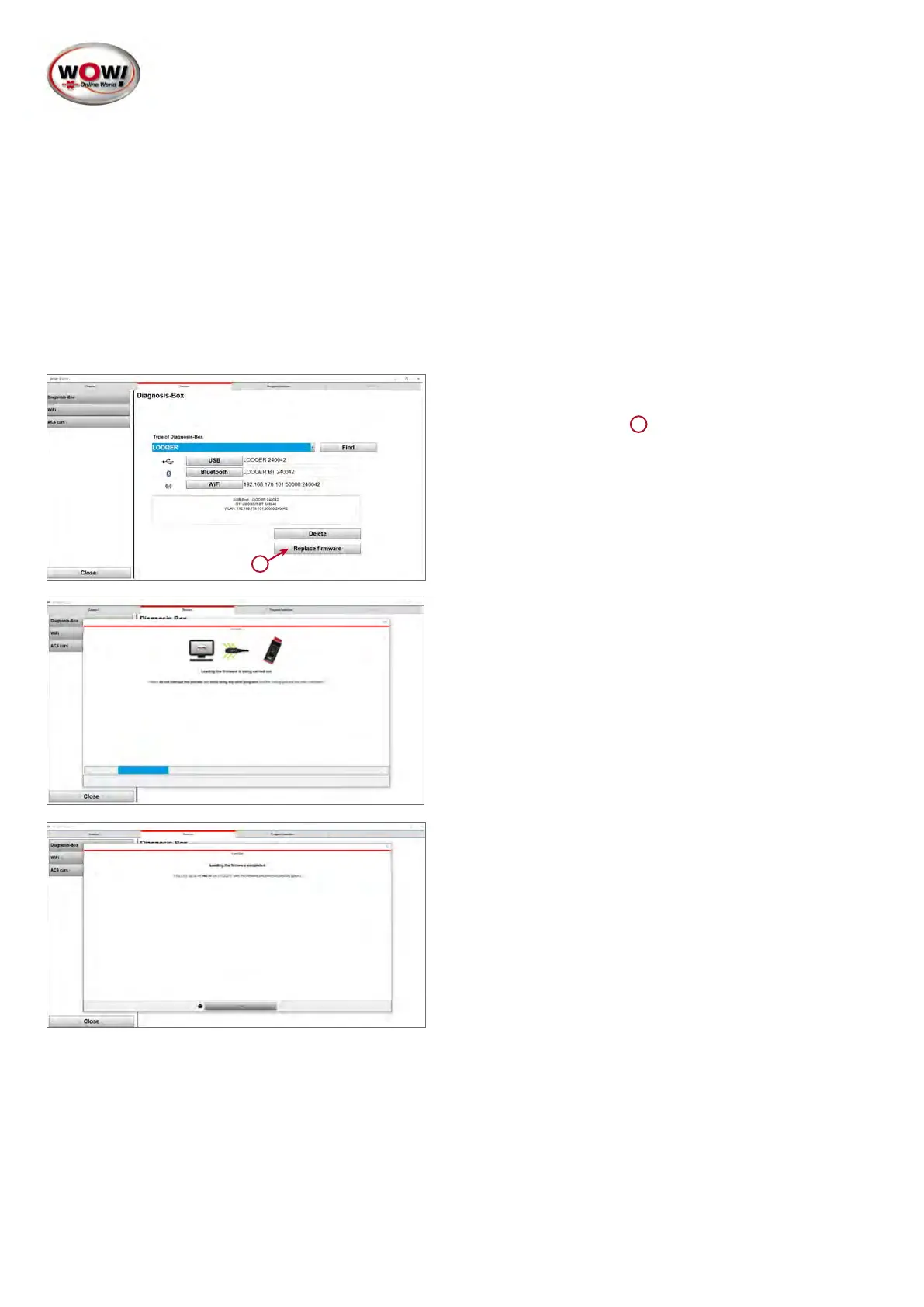 service. Please ensure that the computer on which you are running the WOW! software “LOOQIT” is connected to the