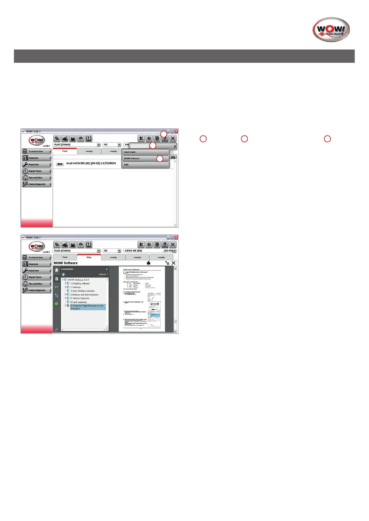 EztazeljárástaWOW!diagnosztikaiszoftverutasításaitartalmazzák.