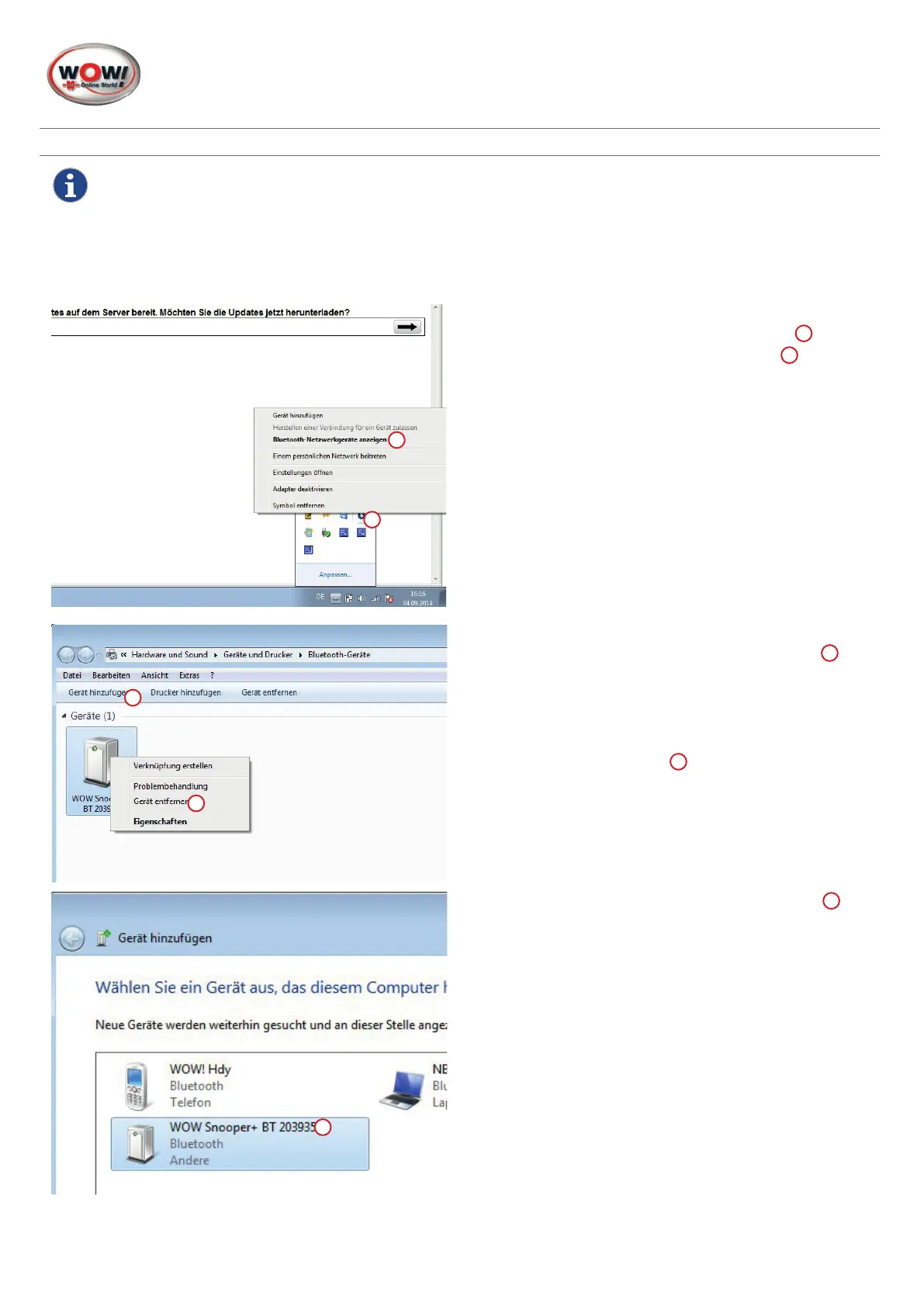 7. In der WOW!-Software den Snooper+ BT anlernen.