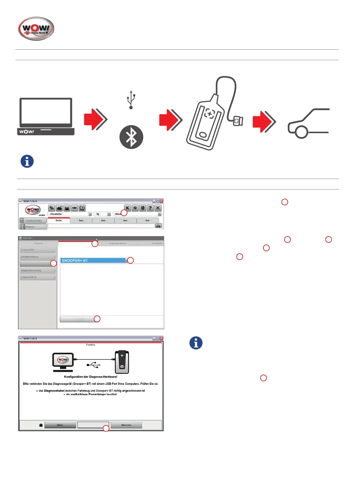 È possibile installare la connessione allo Snooper tramite cavo USB e/o Bluetooth.