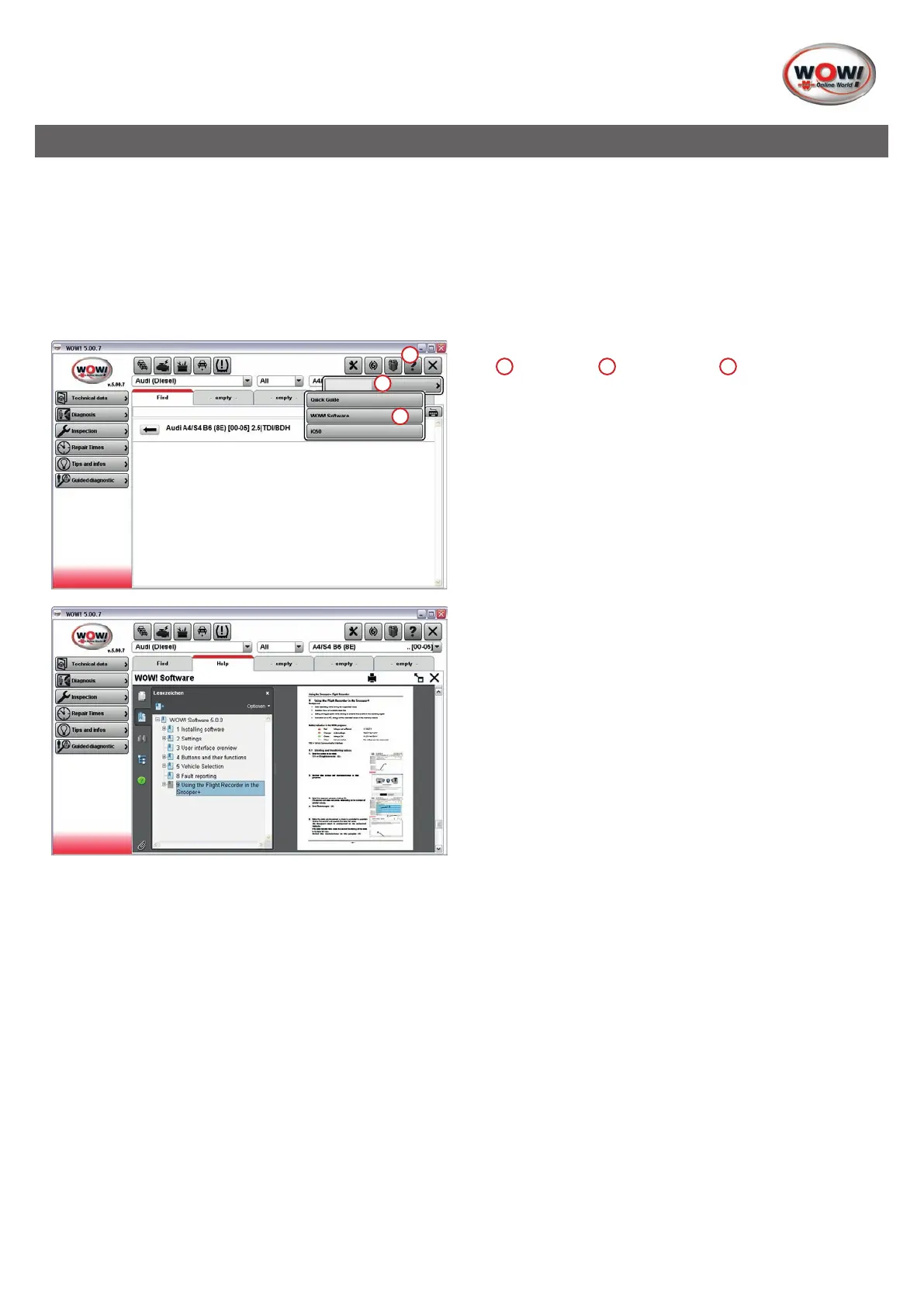 Klik hiervoor in de WOW!-diagnosesoftware op