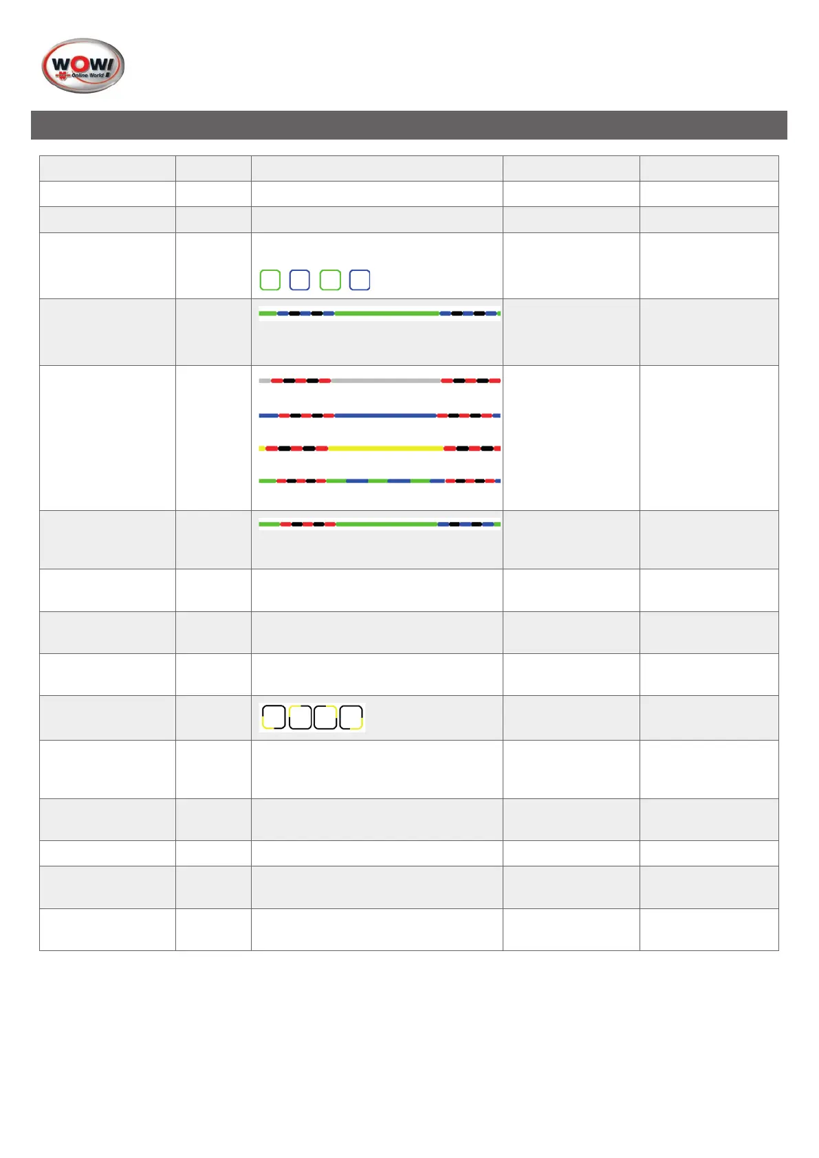 Funktion Farve Kommentar Lyd Lydbeskrivelse