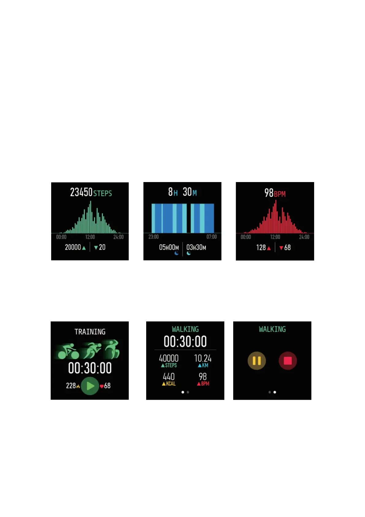 počet krokov, prejdené kilometre, spálené kalórie a srdcová