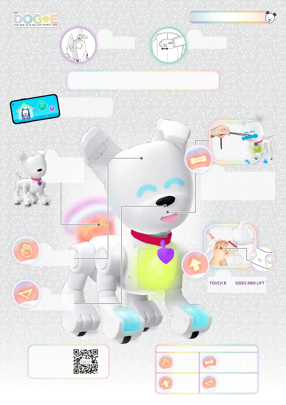 NOTE: Dog-E's eye shapes, ear colors and ear position will vary.