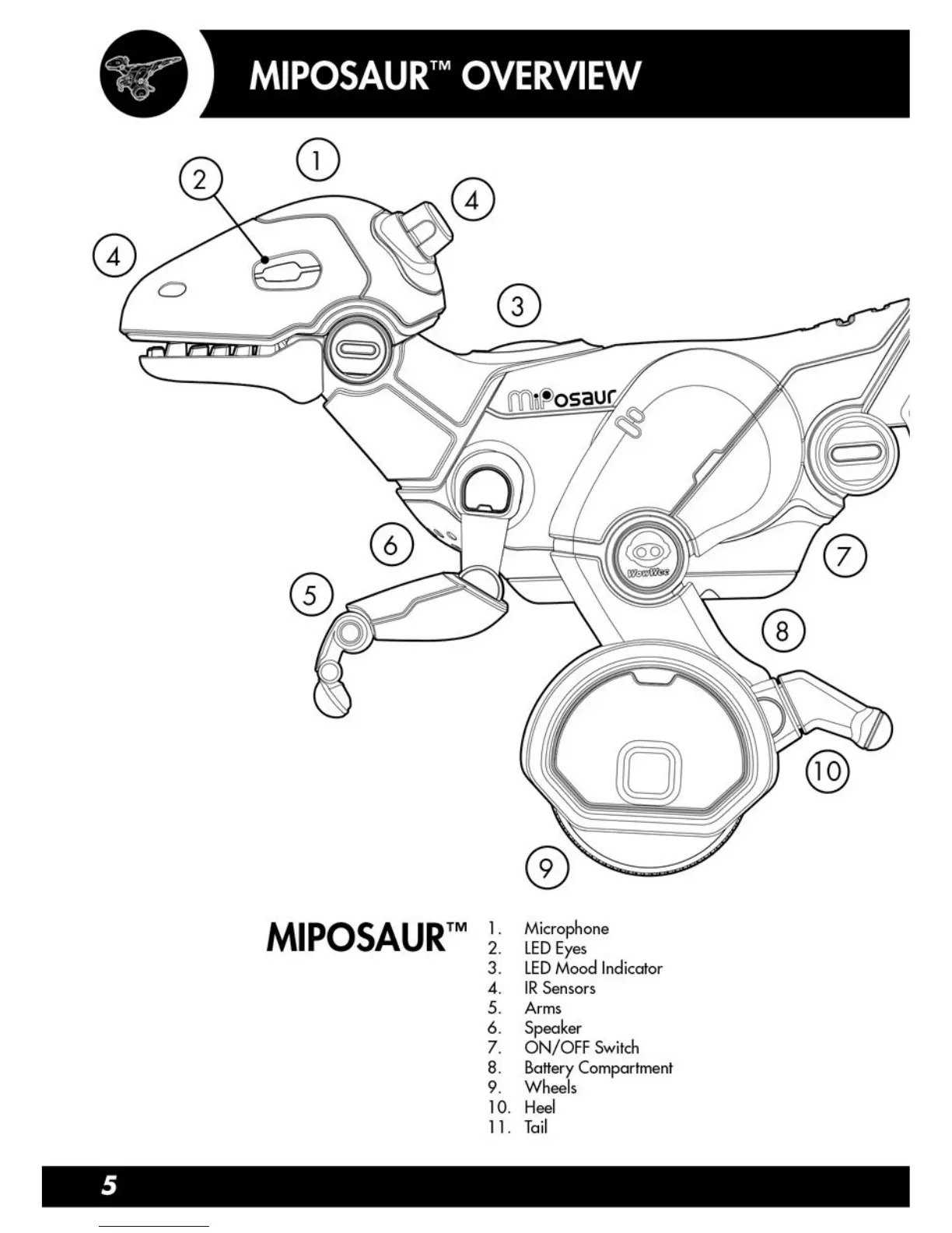 WowWee MiPosaur - Miposaur Overview and Components; Miposaur Parts Identification