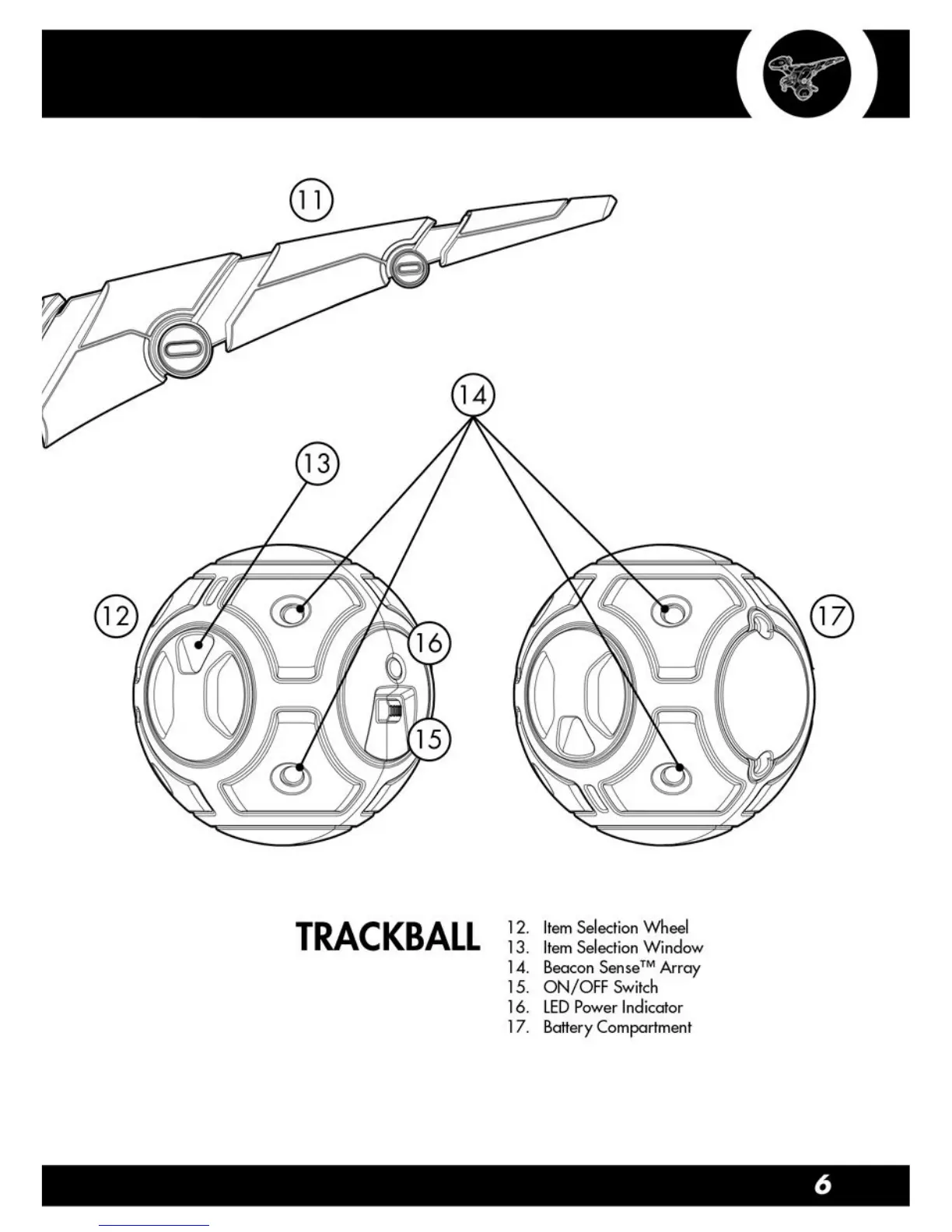 WowWee MiPosaur - Trackball Overview and Components; Trackball Parts Identification
