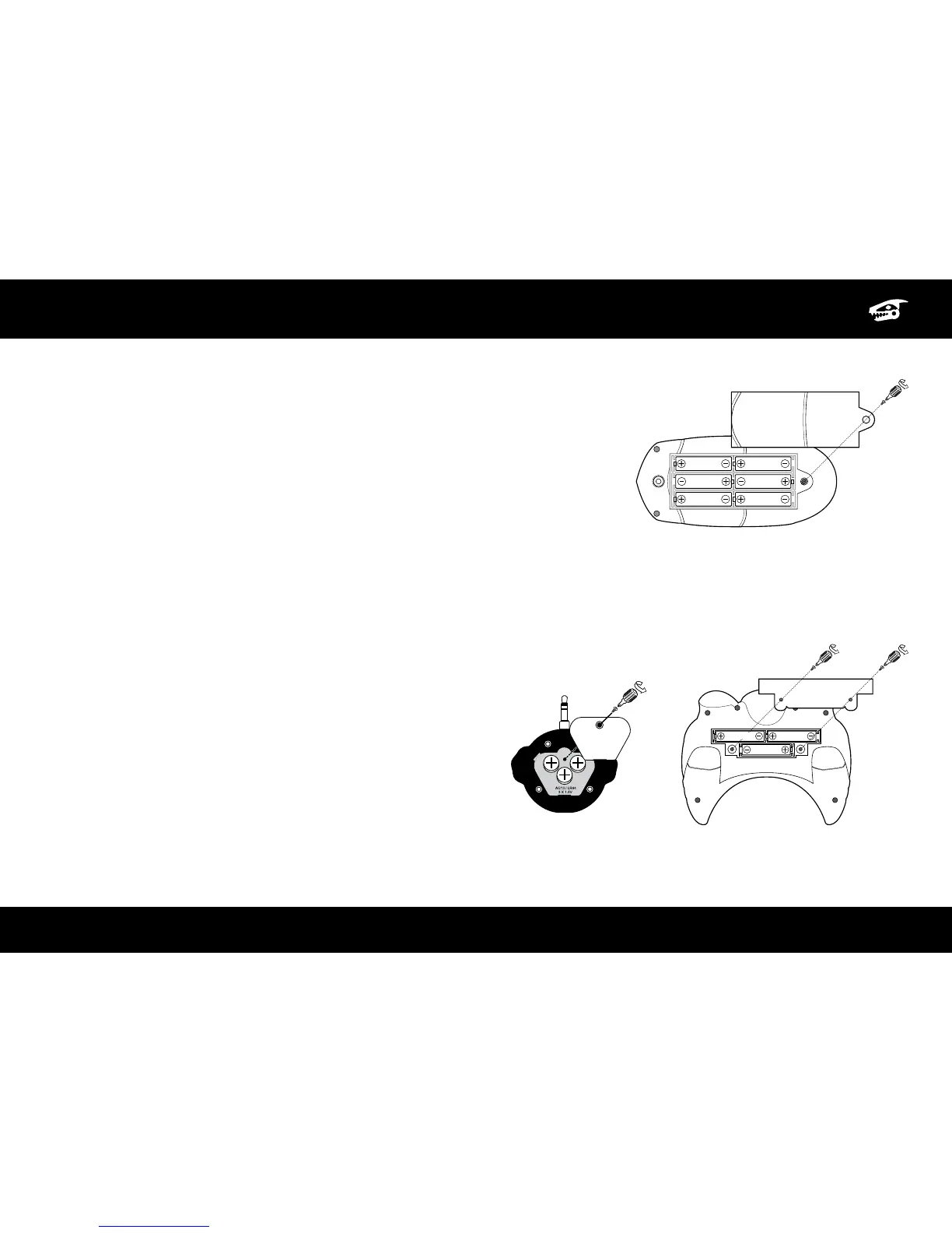 3. Insert batteries (not included) into the Roboraptor X™ and controller as shown in