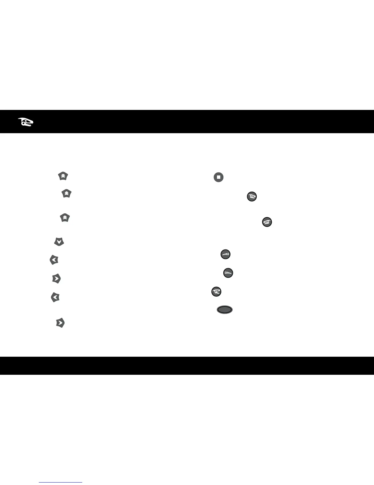 Turn on Roboraptor X™ using the On/Off button (Refer to page 2 “Roboraptor X™ Overview”). Roboraptor X™ can then be controlled directly